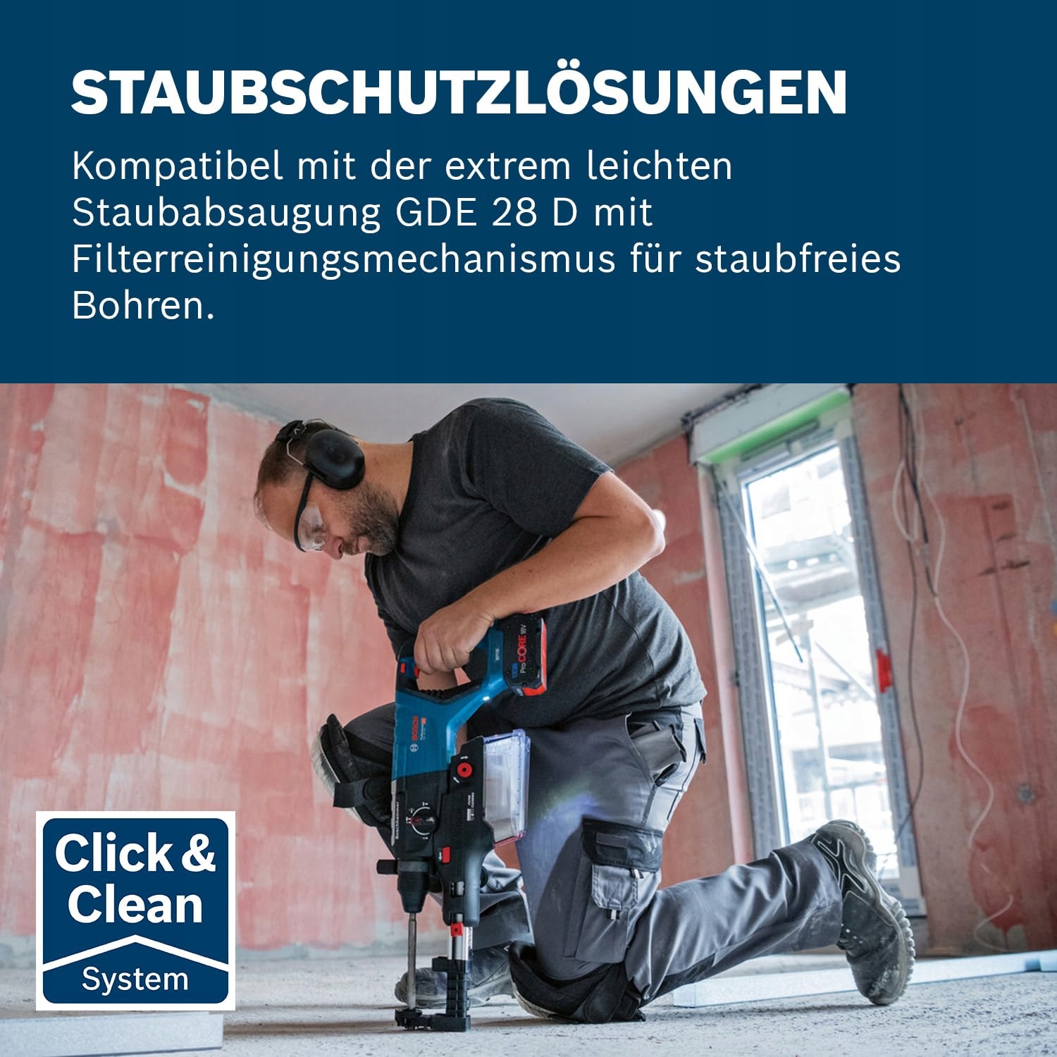 BEZPYŁOWE WIERCENIE: Kompatybilna z odsysaniem pyłu GDE 28 D dla czystego, bezpyłowego miejsca pracy