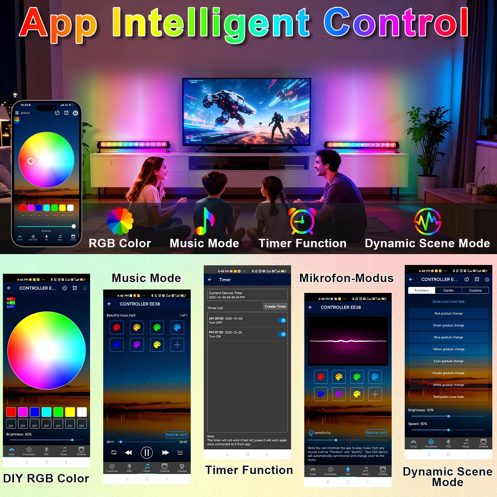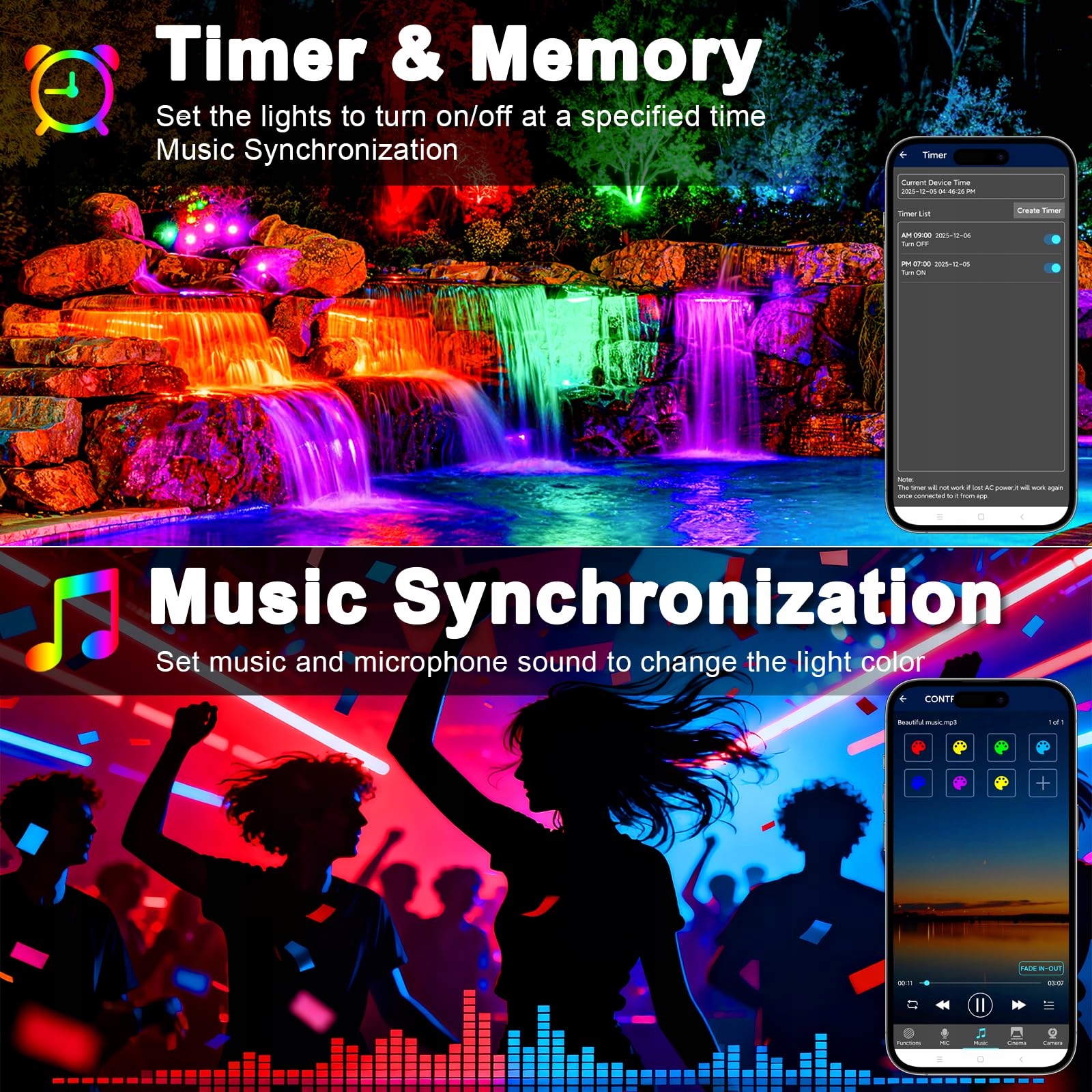 Wybór koloru DIY i inteligentna funkcja timera: Nasz inteligentny reflektor rgb posiada nowo opracowany chip timera, który pozwala ustawić urządzenie tak, aby włączało się i wyłączało automatycznie o określonych godzinach. Dzięki funkcji pamięci ustawienia pozostają zachowane. Możesz wybierać spośród 16 milionów indywidualnie dostosowywanych kolorów. Różne dynamiczne tryby i tryby muzyczne są dostępne dla różnych scenariuszy zastosowań.