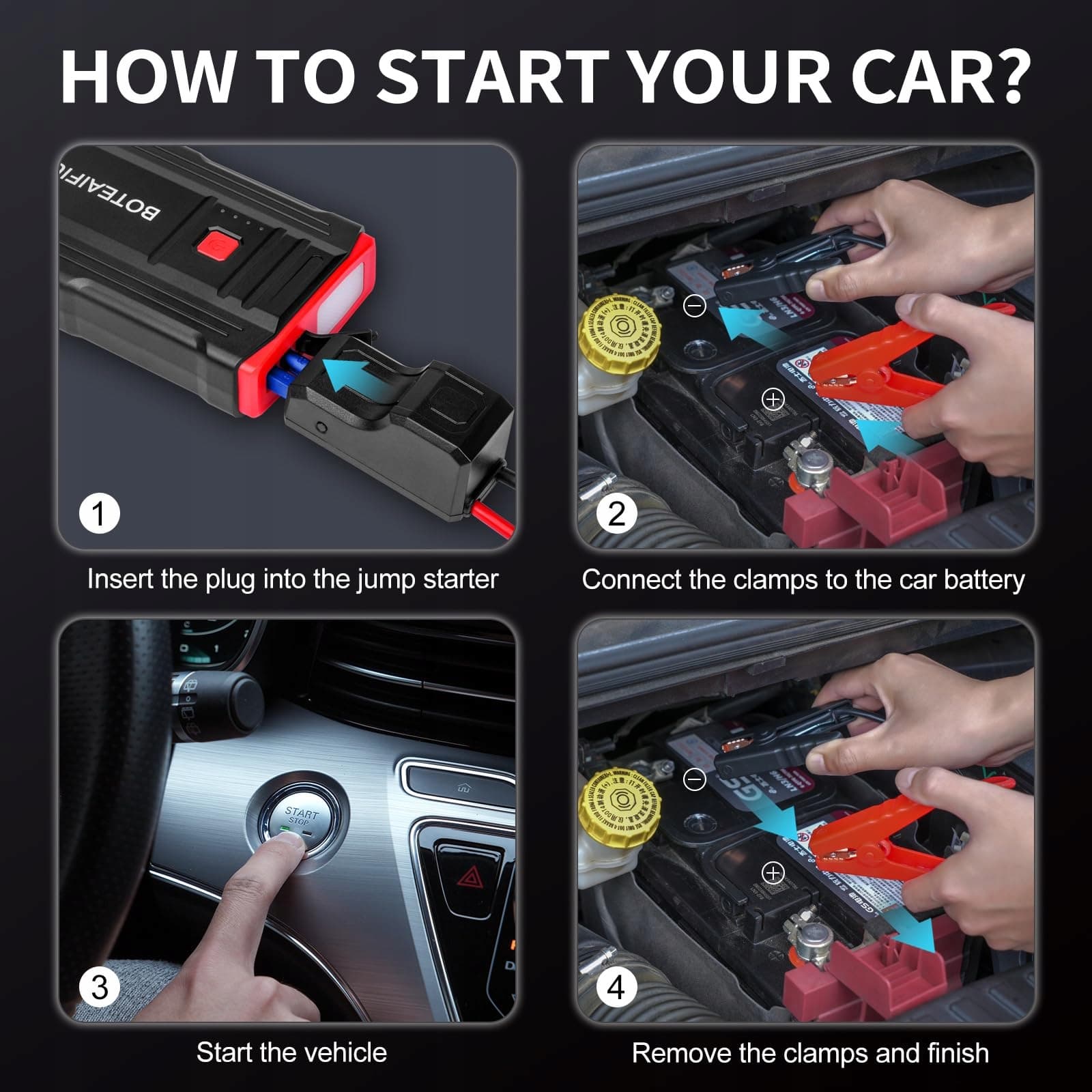 [3000A Auto Starthilfe Powerbank]Mocna i szybka, aby uruchomić Twój samochód. Nawet w temperaturach między -20℃ a 60℃ możesz uruchomić 12V akumulator samochodowy w kilka sekund. Łatwa do przenoszenia i idealna na podróże. Prosta obsługa, nawet gdy podróżujesz sam, możesz samodzielnie uruchomić swój samochód