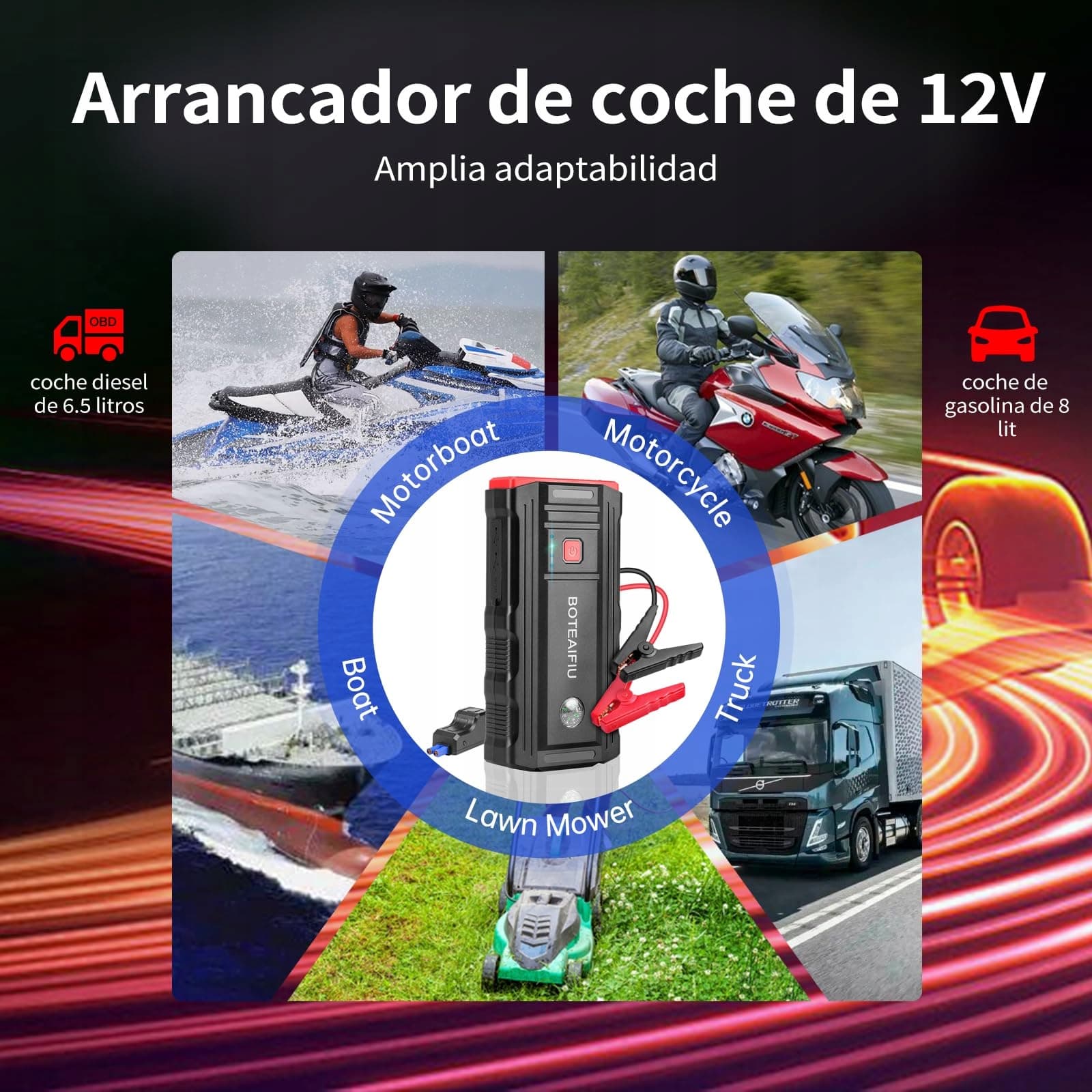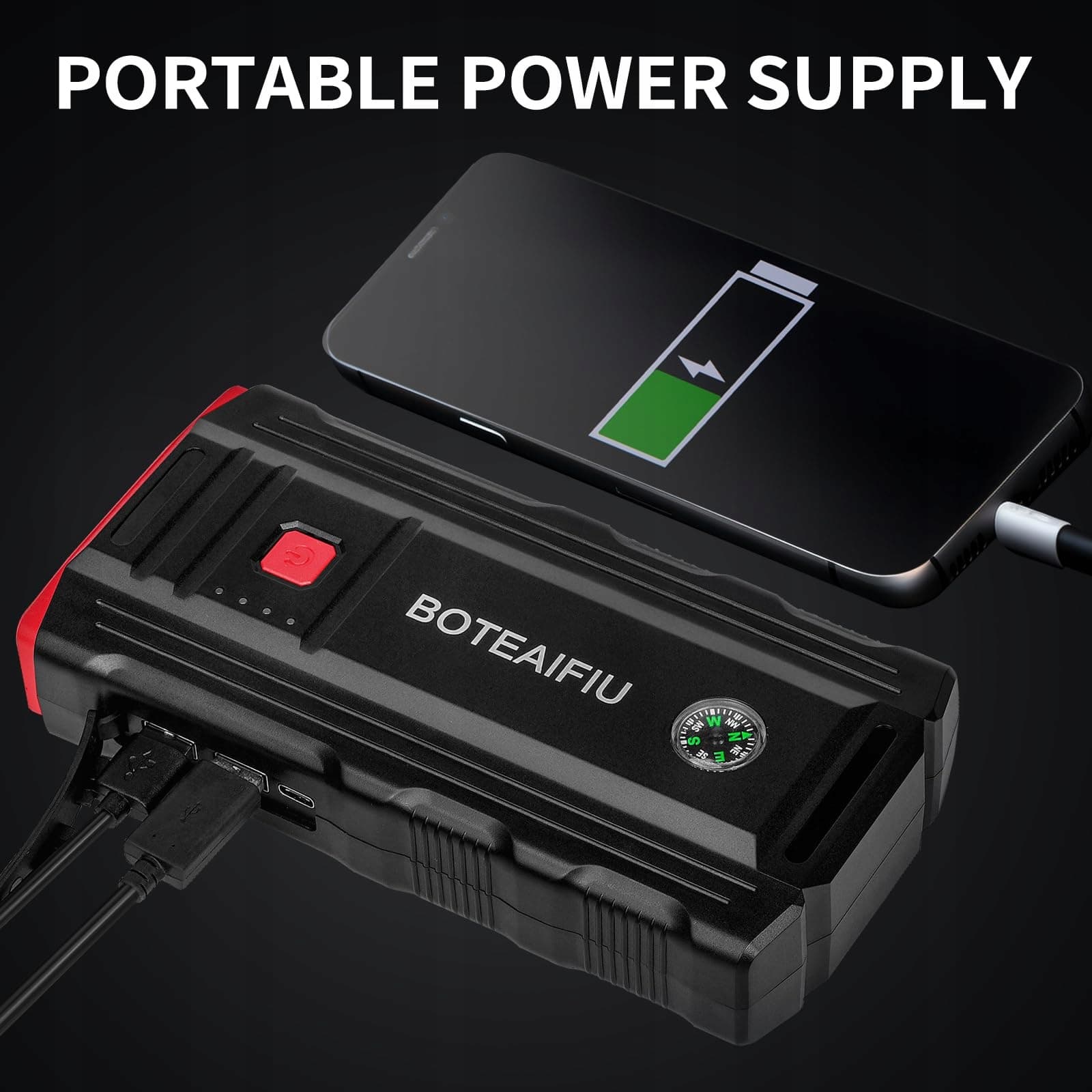 BOTEAIFIU Powerbank Rozruchowa 3000A 8.0L Benzyna 6.5L Diesel LED 12V
