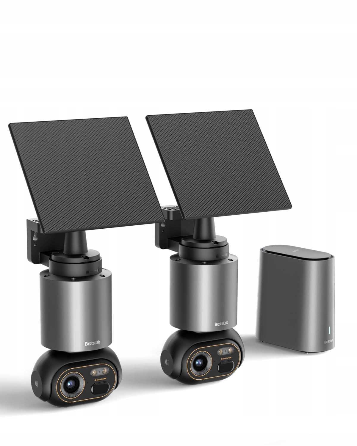 BOTSLAB 4K Kamera do monitoringu zewnętrznego na baterię solarną, zestaw 2 kamer z HomeBase, 32GB lokalnej pamięci, bez opłat, kamera WLAN panoramiczna 360° na zewnątrz z 8MP UHD kolorowym widzeniem nocnym, wykrywaniem AI, automatycznym śledzeniem