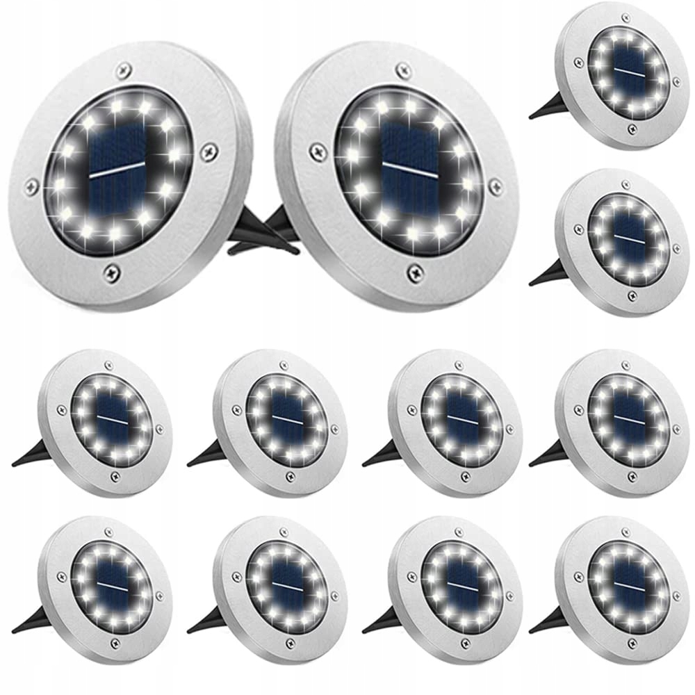 Bowfar 12 sztuk solarnych lamp gruntowych na zewnątrz, lampy solarne do ogrodu z 12 diodami LED, 3000K zimna biel, wodoodporne lampy solarne do ogrodu, lampy solarne na trawnik, podjazd, chodnik, patio, ogród