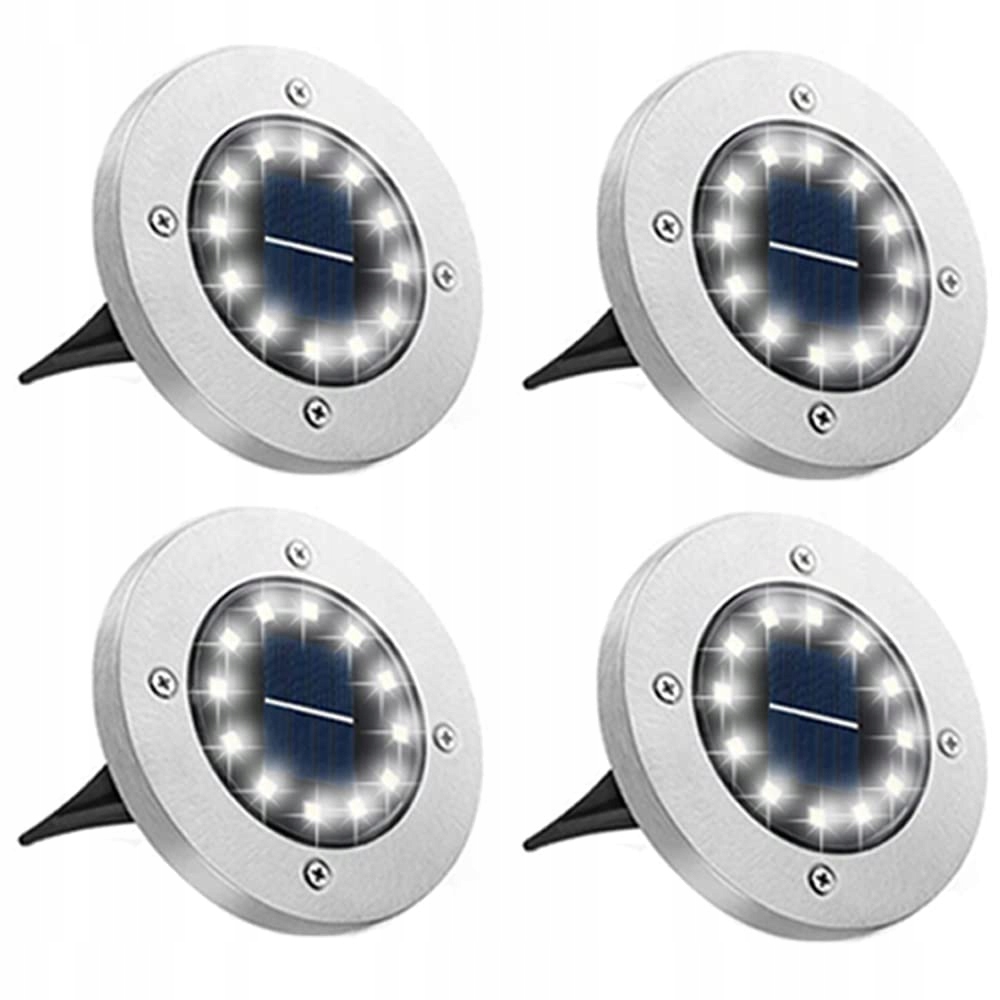 Bowfar 4 sztuki solarnych lamp ogrodowych, lampy solarne do ogrodu z 12 diodami LED na zewnątrz, 3000K zimnobiała wodoodporna lampa solarna do ogrodu, lampy solarne na trawnik, podjazd, ścieżkę, patio, ogród