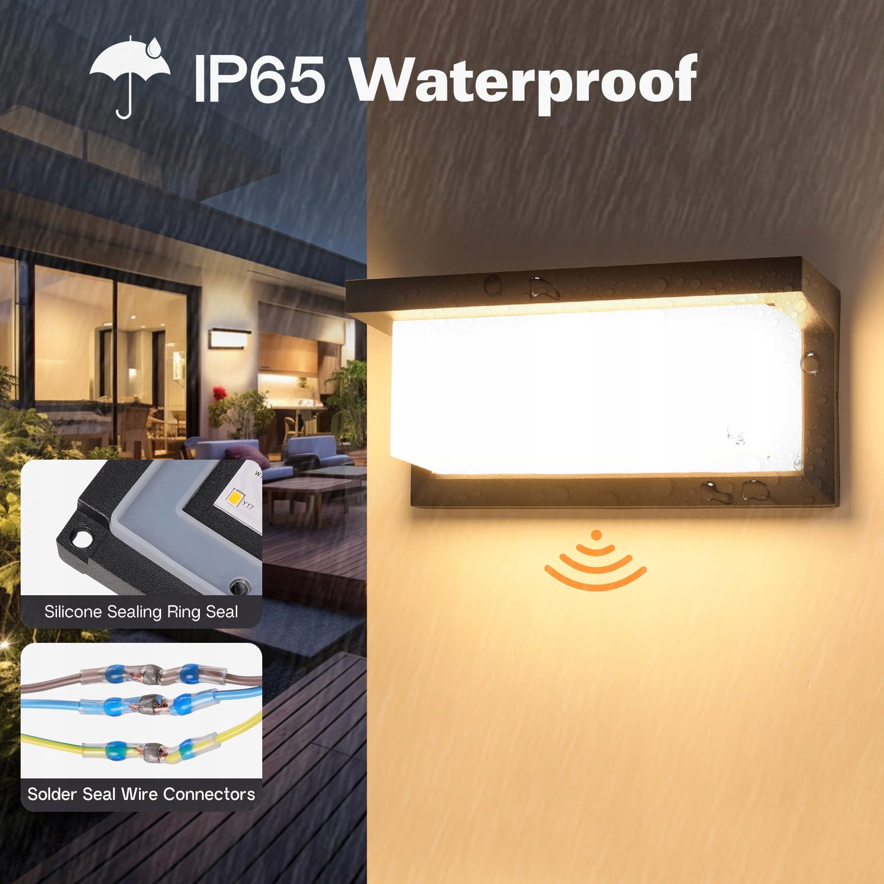 【Wodoodporność IP65】Ta zewnętrzna lampa ścienna posiada zaawansowaną konstrukcję wodoodporną IP65 i jest przeznaczona do użytku na zewnątrz. Może być bezpiecznie używana niezależnie od deszczowej pogody lub wilgotnego klimatu. Jej uszczelniona konstrukcja skutecznie blokuje parę wodną i kurz, zapewniając długą trwałość lampy. Idealnie nadaje się do montażu na zewnątrz, np. w ogrodach, na tarasach, przy wejściach, w garażach i na ścianach domów.
