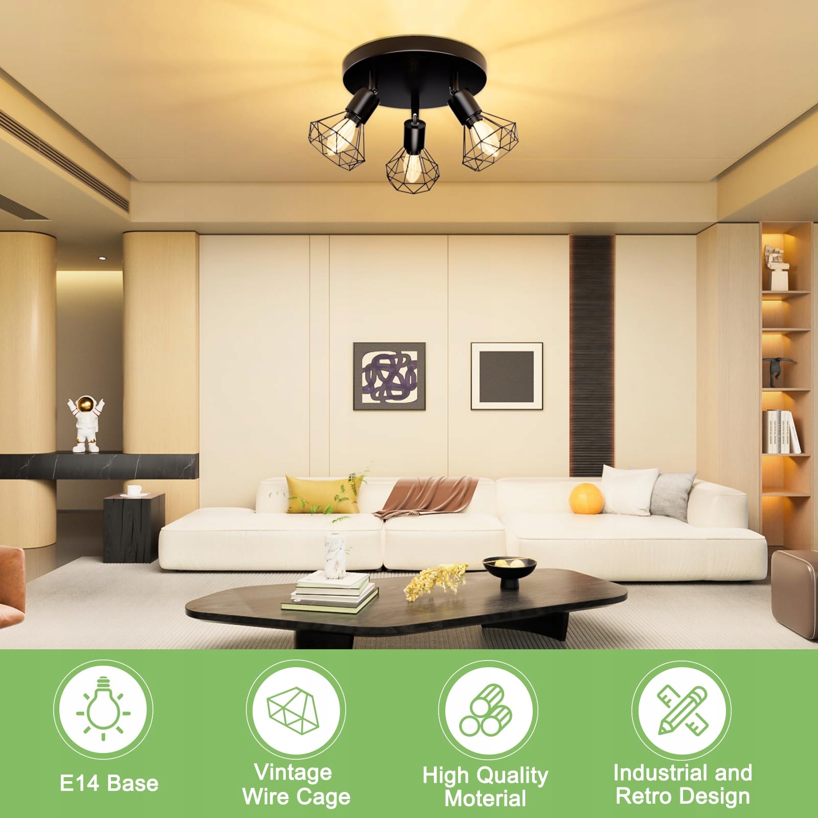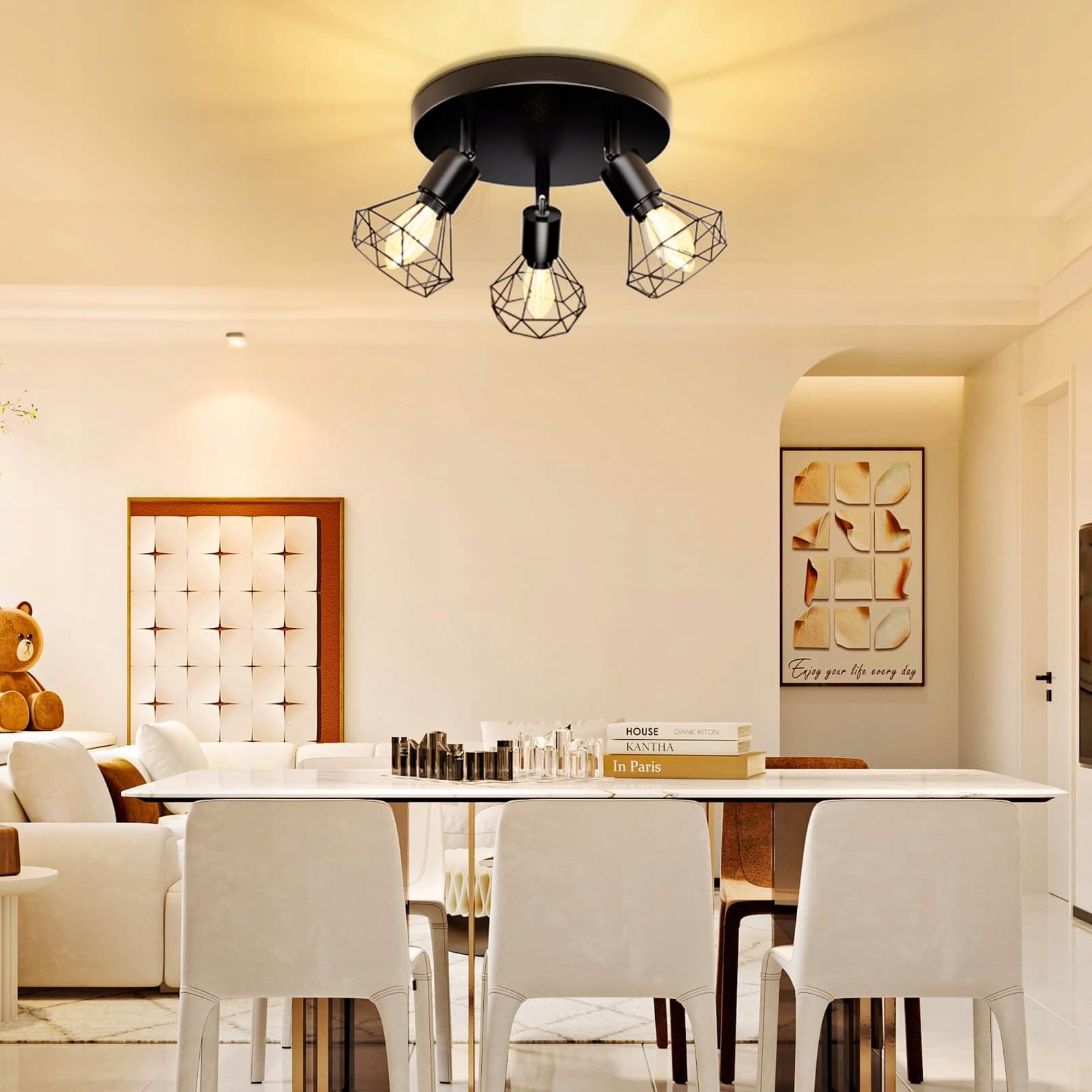 [Design z metalowej siatki, styl przemysłowy] Czarna lampa sufitowa LED wykonana jest z wysokiej jakości czarnego drutu metalowego, który jest odporny na rdzę i trwały, a także nie blaknie łatwo. Lampa sufitowa do kuchni ma zdejmowany klosz w formie siatki, a wzór siatki jest starannie zaprojektowany, aby Twoja lampa w salonie emitowała urzekające efekty świetlne i cieniowe. Czarny reflektor sufitowy z siatki nadaje się do nowoczesnej architektury wnętrz, a także do stylu retro i przemysłowego