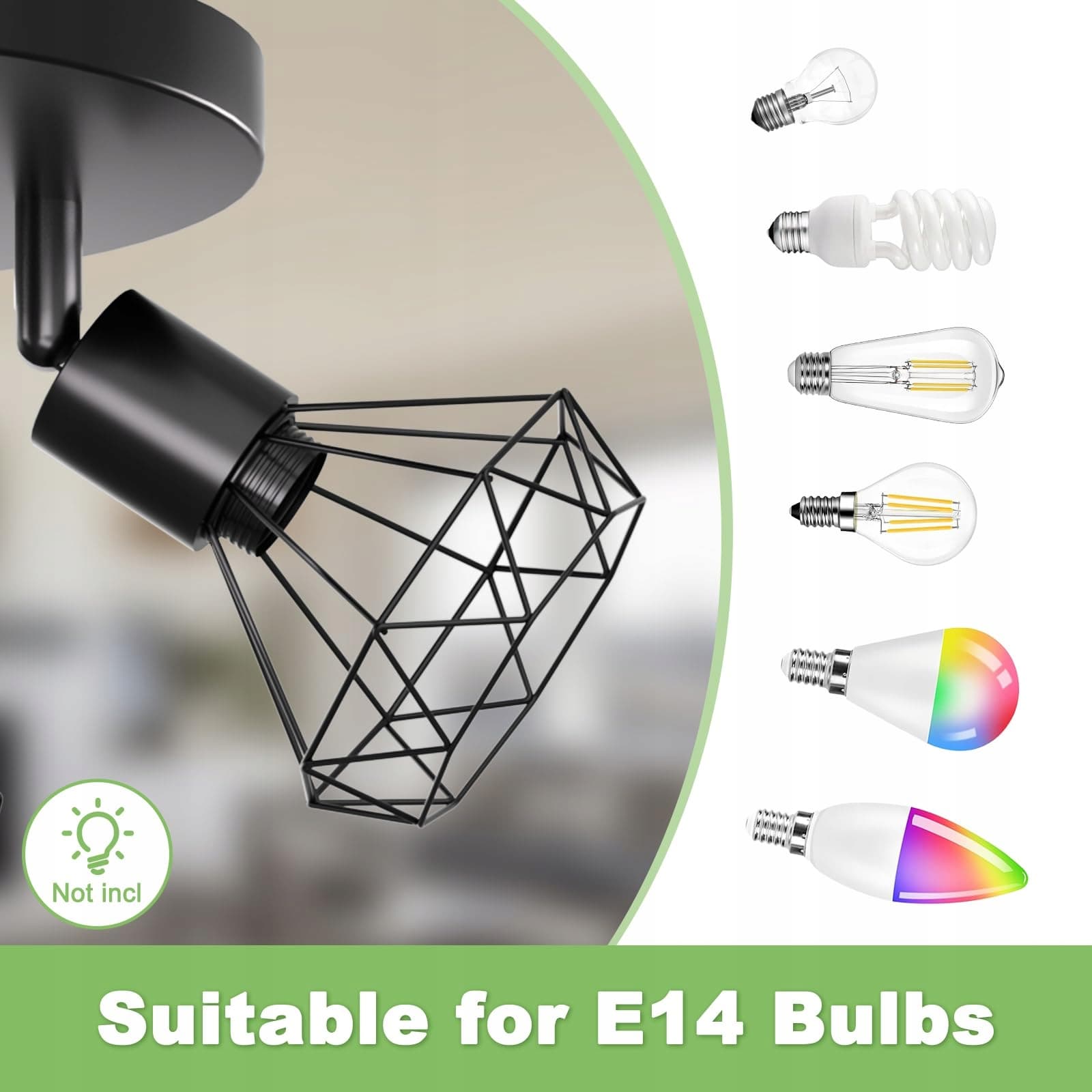 [Standardowy gwint E14, wymienne żarówki] Czarna lampa sufitowa wykorzystuje standardowy gwint E14, który jest odpowiedni dla wszystkich żarówek E14, maksymalna moc: 3 x 60 W, napięcie: 220–240V. Możesz wybierać żarówki o różnych temperaturach barwowych: ciepła biel, zimna biel, RGB itp. Lampy LED z wymiennymi żarówkami mogą obniżyć koszty zakupu, a nie ma potrzeby wymiany całych reflektorów sufitowych z powodu problemów z żarówkami