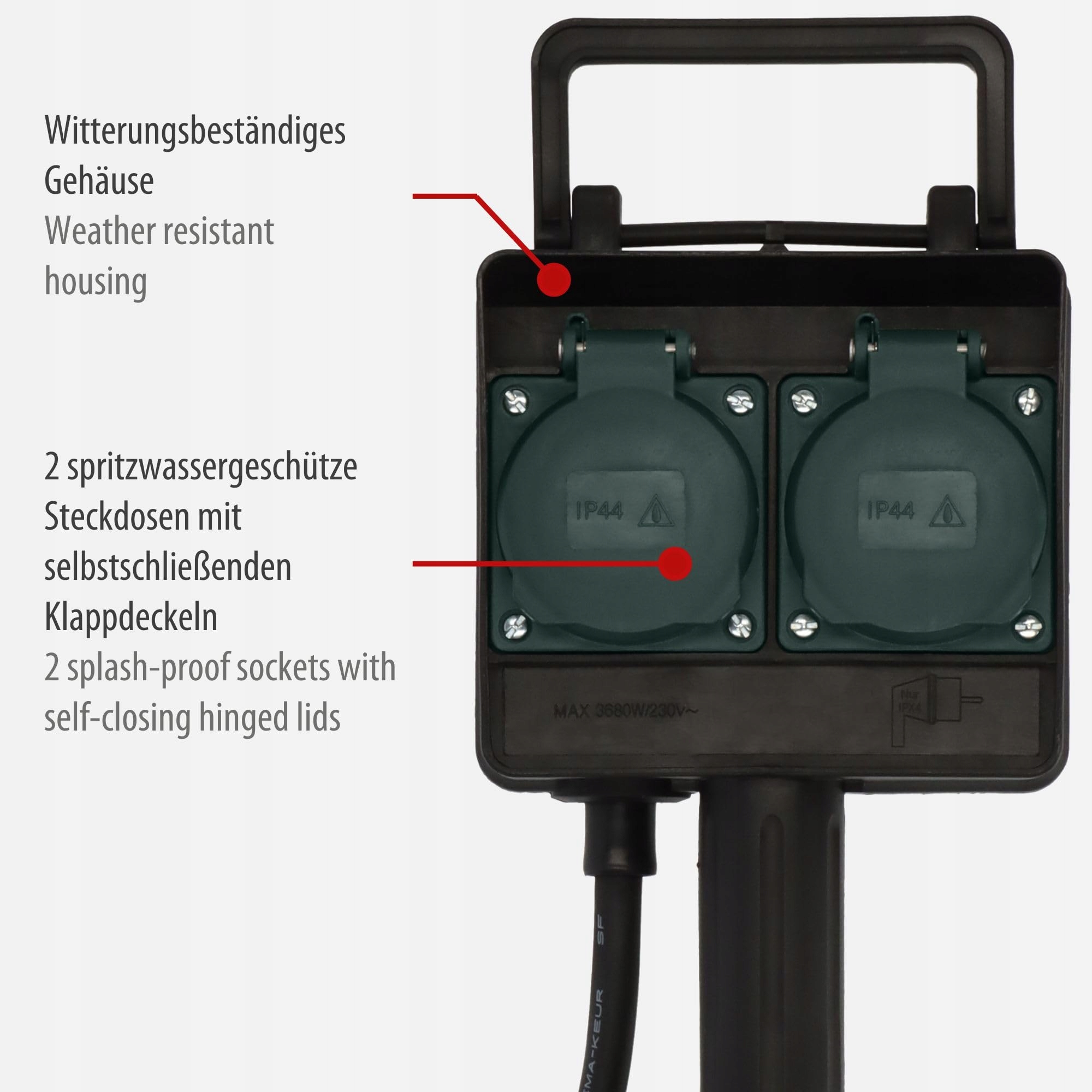 Gniazdo ogrodowe 2-sztukowe z wbitym kołkiem do użytku na zewnątrz, długość kabla 1,4m H07RN-F 3G1,5