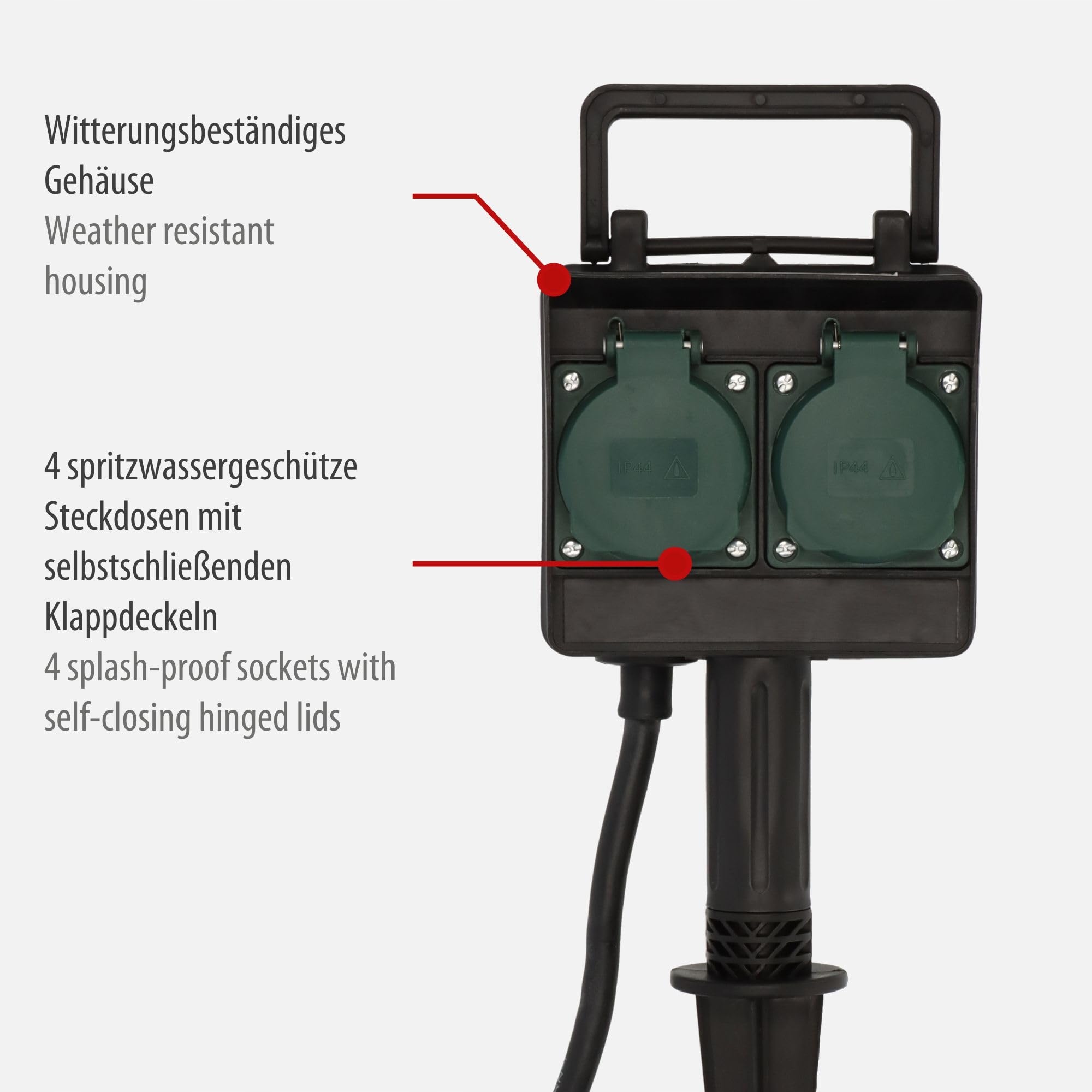 4-krotne gniazdo ogrodowe z kolcem do użytku na zewnątrz, długość kabla 10m H07RN-F 3G1,5