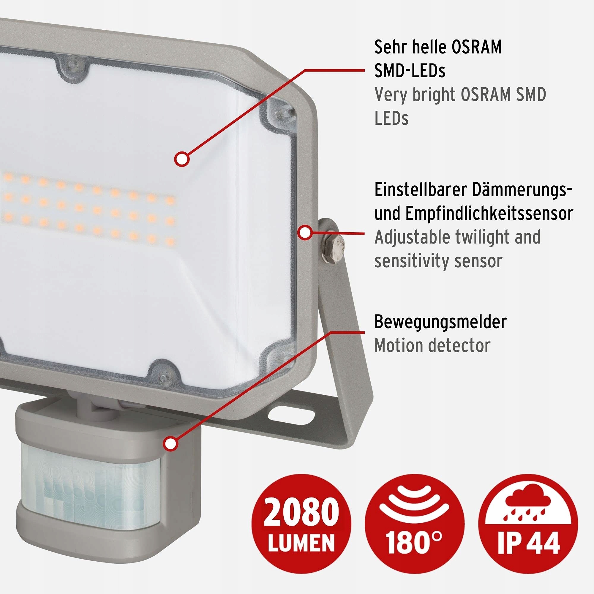 W zestawie: 1x reflektor LED AL 2050 z czujnikiem ruchu oraz czujnikami zmierzchu i czułości - w najlepszej jakości od brennenstuhl