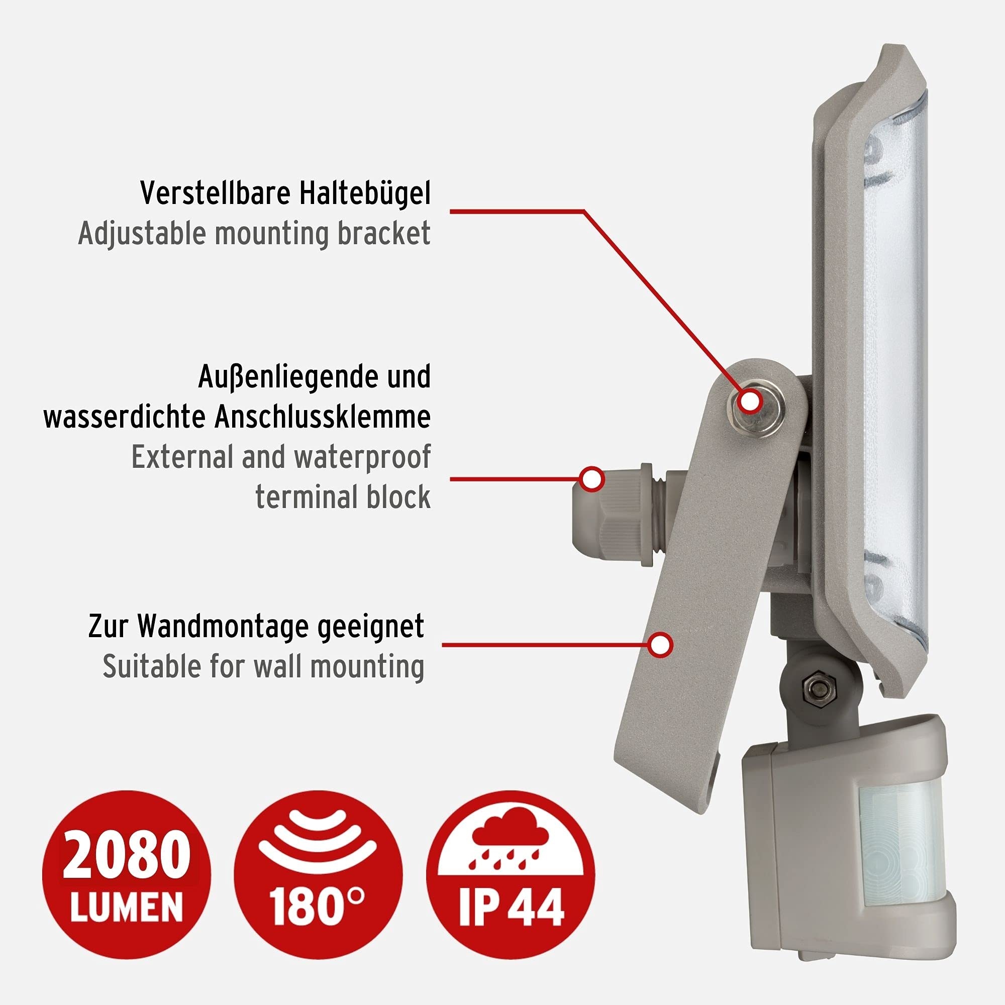 Brennenstuhl LED Reflektor AL 2050 z czujnikiem PIR (20W, 2080lm, 3000K, IP44, LED naścienny z czujnikiem ruchu)