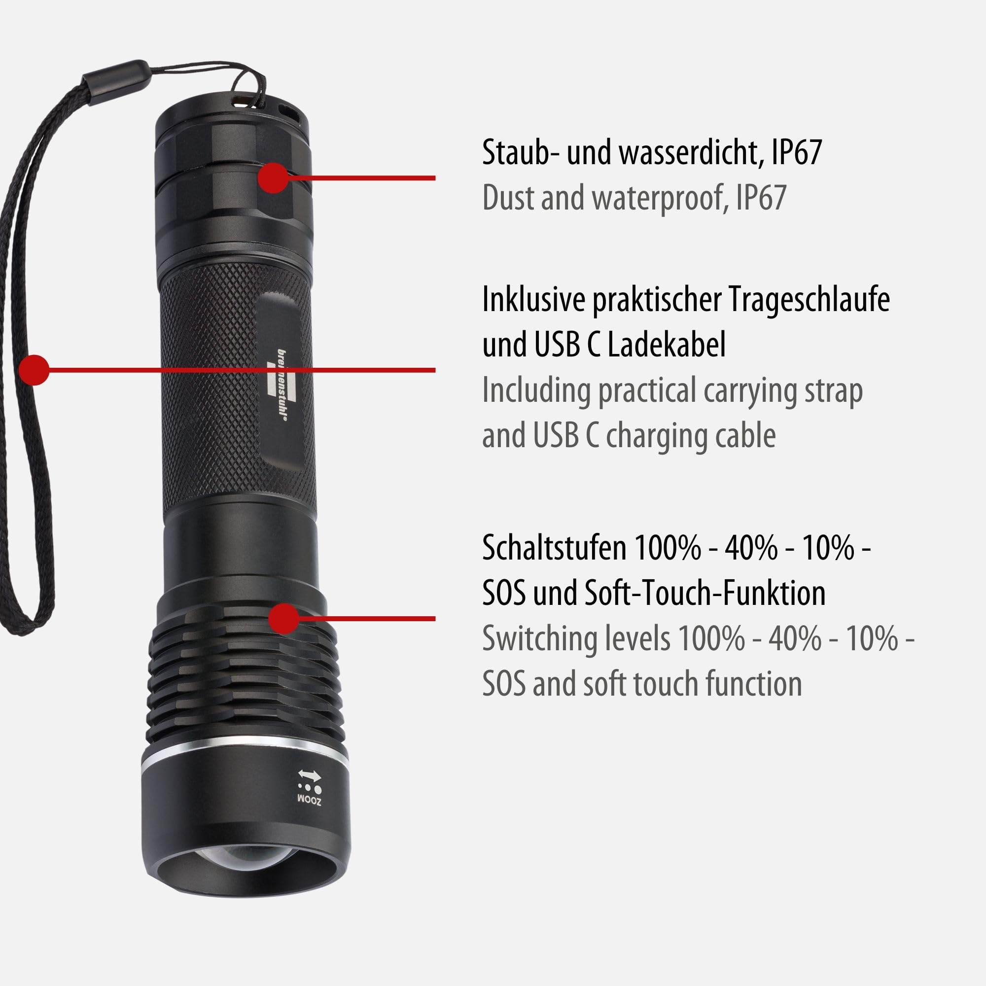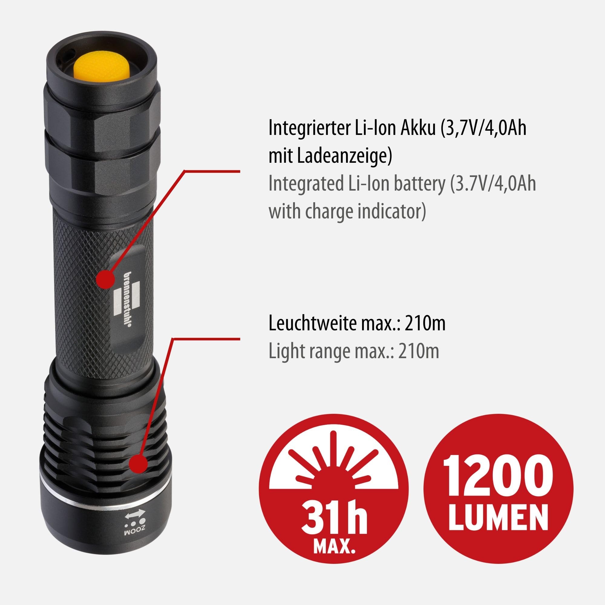 Lampa LED Brennenstuhl LuxPremium Akku-Fokus TL 1201 AF IP67 / Latarka z jasną diodą CREE (płynna regulacja ogniskowej, 1200lm, 210m zasięg świecenia, maks. 31h czas świecenia)