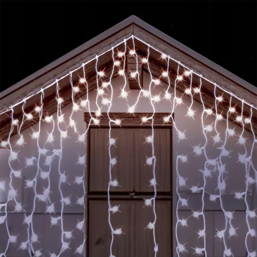 Łańcuch świetlny z soplami lodu [15 m x 0,6 m], [zimne białe światło], [IP44] (wewnątrz/na zewnątrz), [bateria 3AA] (bez kabla) i [idealny] na imprezy.