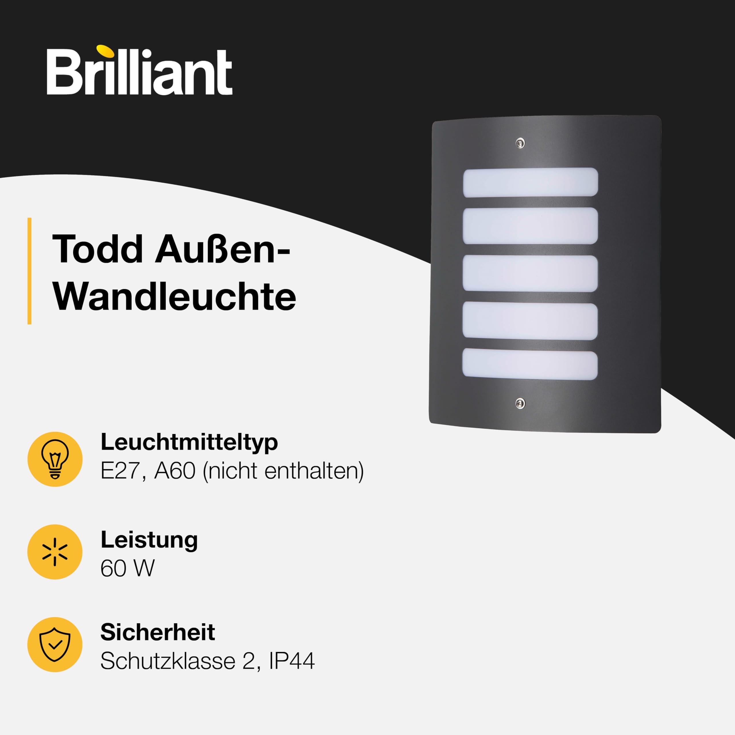BRILLIANT Todd zewnętrzna lampa ścienna antracyt – wodoodporna lampa zewnętrzna – lampa ścienna na zewnątrz do ściany domu, wejścia i ogrodu – oprawka E27