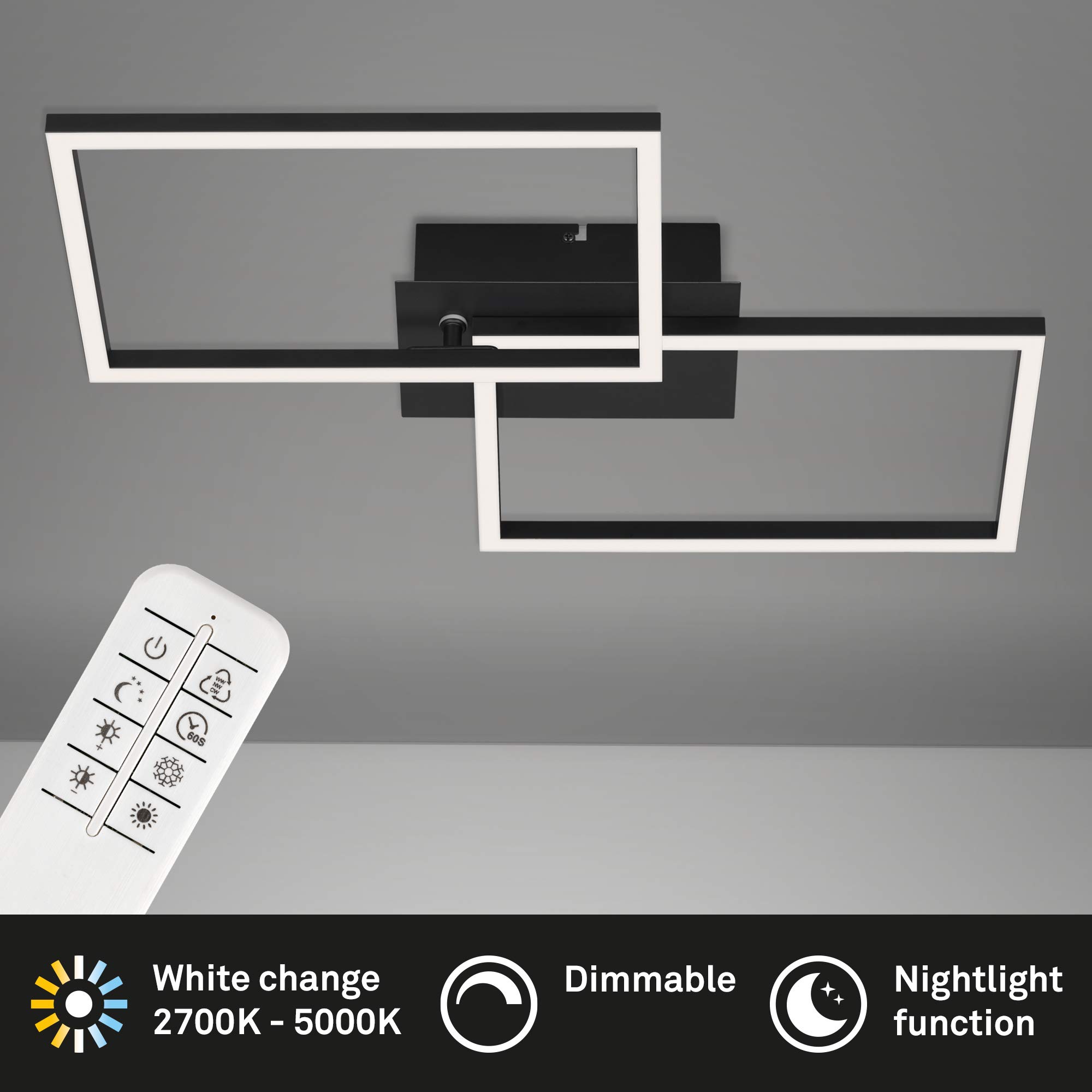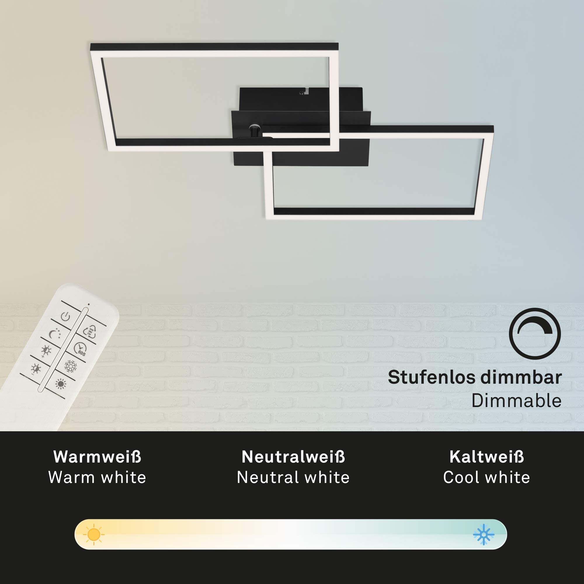 BRILONER - Lampa sufitowa LED z pilotem, ściemniana, regulowana od ciepłej bieli do neutralnej bieli, lampa, lampa sufitowa LED, lampa do salonu, lampa do sypialni, lampa do kuchni, 50x38,8x7,8 cm, czarna