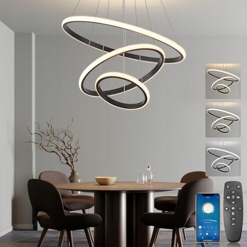�【Nowoczesna lampa żyrandolowa z 3 pierścieniami】Ściemniana lampa LED żyrandolowa, regulowana lampa sufitowa, lampa wisząca. Unikalny, smukły, nowoczesny design z trzema pętlami i regulowanymi sznurkami; Prosta i elegancka, pasująca do klasycznego, luksusowego, przejściowego designu, niskich/wysokich sufitów, skośnych sufitów itp. Dodaj odrobinę elegancji do swojego domu dzięki tej lampie sufitowej żyrandolowej, która nadaje się na powierzchnię około 15–25 m².
