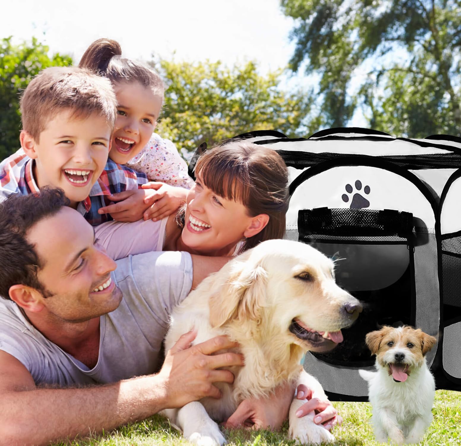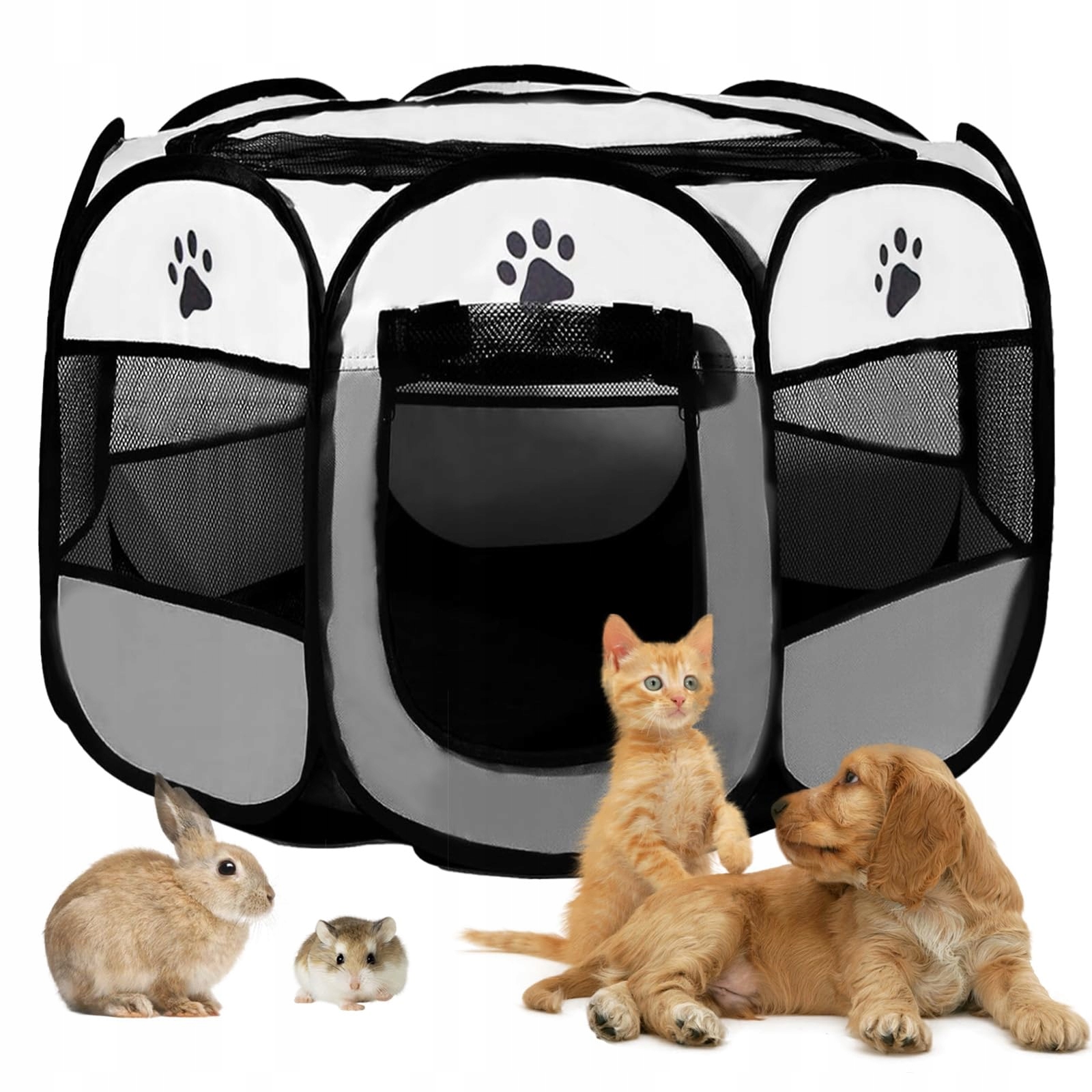 Duża przestrzeń i wszechstronne zastosowanie: Wybieg dla psów do wnętrz jest odpowiedni do treningu psów, wybiegu dla psów do wnętrz, jako miejsce do spania lub plac zabaw. Dzięki przestronnemu wnętrzu w wybiegu dla szczeniąt jest odpowiedni dla psów, skrzynki dla kotów, szczeniąt, królików, fretek, świnek morskich, chomików, szynszyli, jeży i innych, zarówno do wybiegu dla szczeniąt wewnątrz, jak i wybiegu dla kotów na zewnątrz.