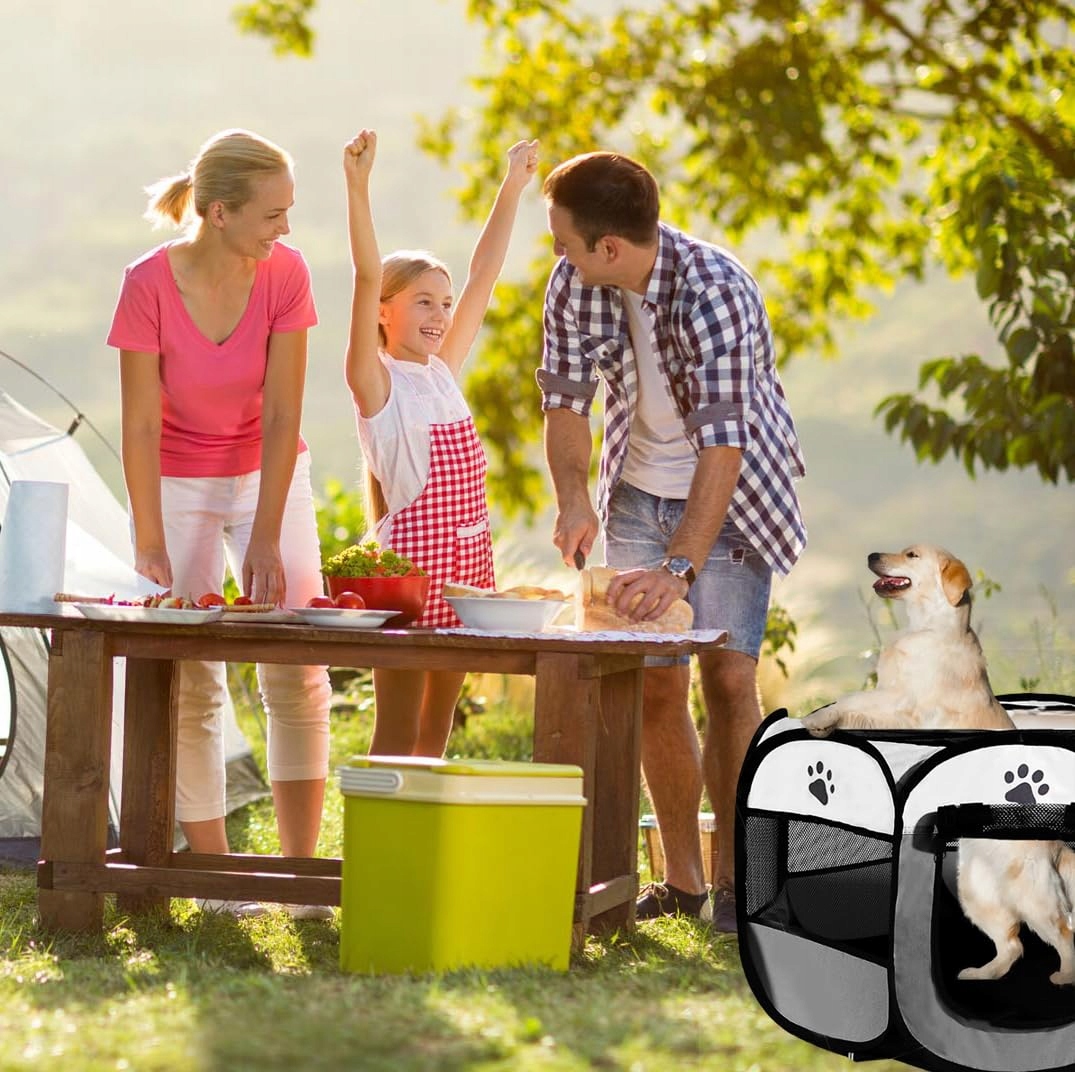 Mobilne miejsce do spania: Wybieg dla psów zapewnia Twojemu czworonożnemu współlokatorowi przytulne miejsce do pobytu i spania. Składany i lekki, ale jednocześnie solidny, wybieg dla szczeniąt do wnętrz jest bardzo odpowiedni na podróże, kemping i łatwą mobilność.