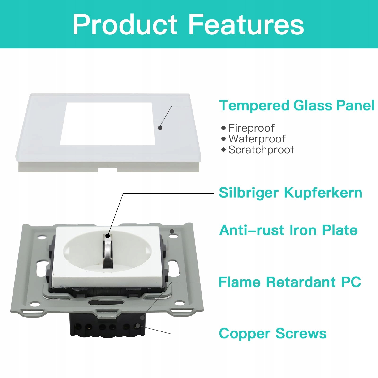 【DOBRA JAKOŚĆ】: Gniazdo BSEED wykonane jest z ognioodpornego ABS i wodoodpornego panelu dotykowego z utwardzonego kryształu.