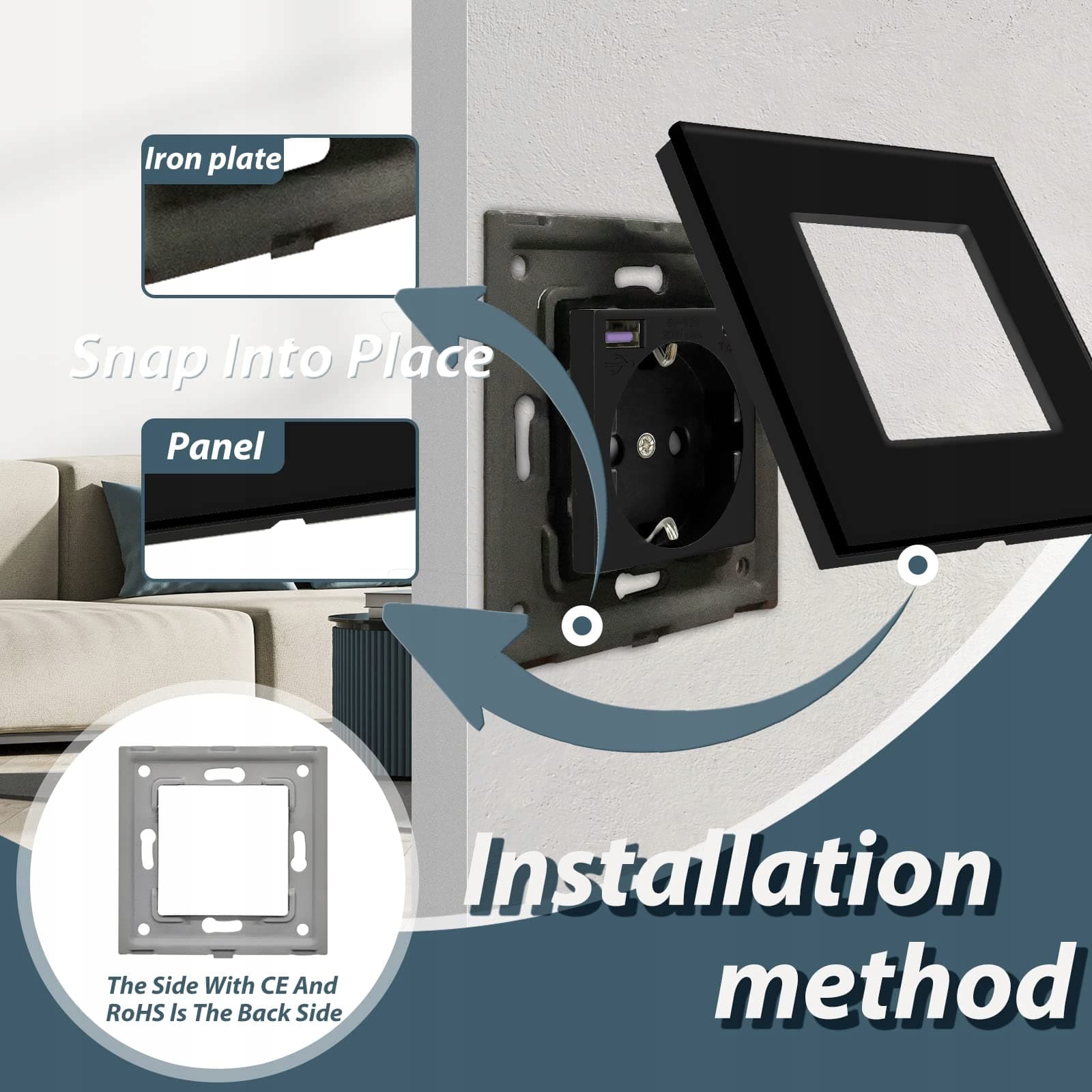 【ŁATWY MONTAŻ】: Proszę podłączyć przewód fazowy (znak 'L'), neutralny (znak 'N') i uziemienie (znak '〨'), aby zainstalować gniazdo. W razie potrzeby panel można łatwo ponownie złożyć, aby wymienić części urządzenia.
