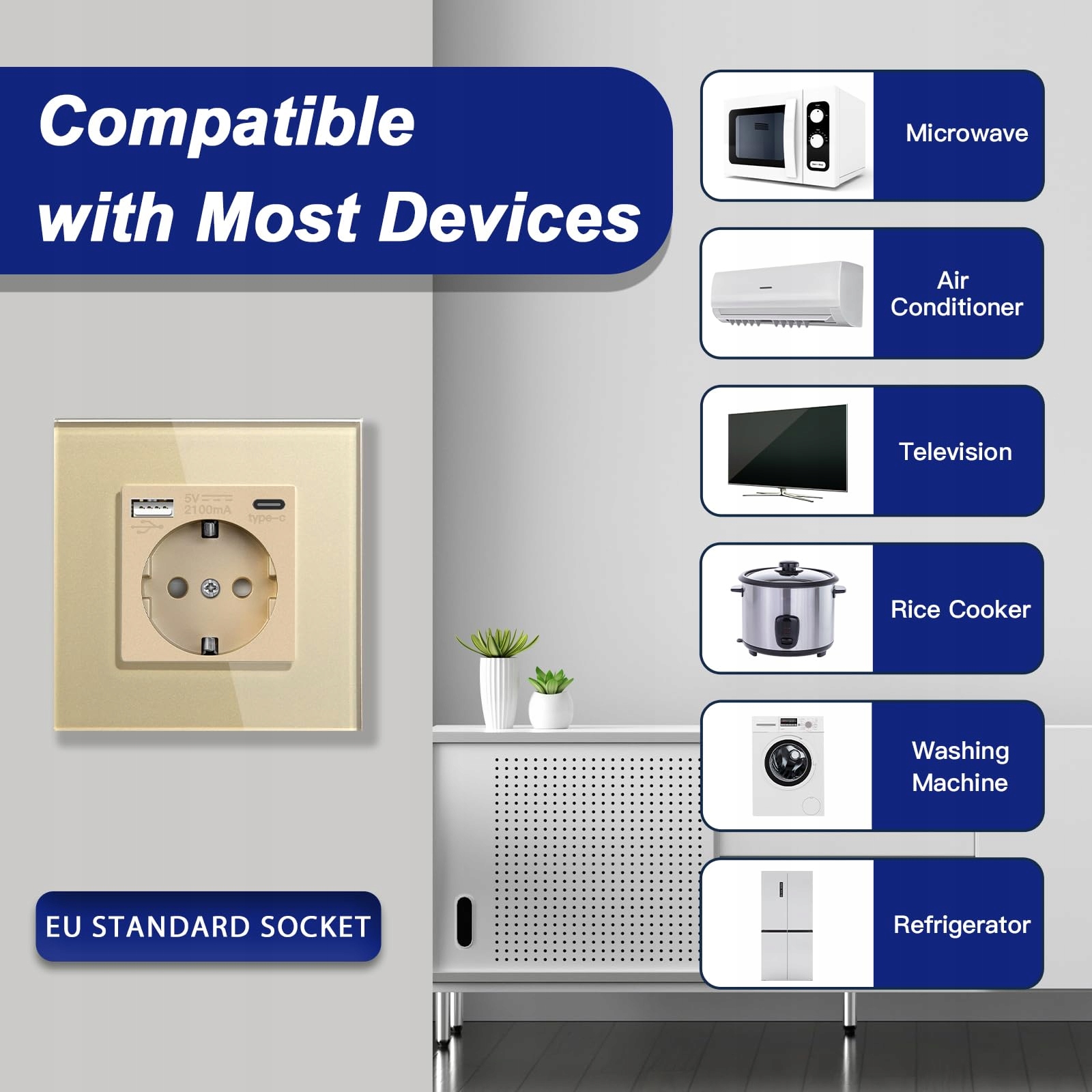 👍👍【BOGATA FUNKCJA】: Gniazdo podtynkowe jest odpowiednie dla tradycyjnych urządzeń domowych i może ładować dwa urządzenia jednocześnie przez złącze USB.