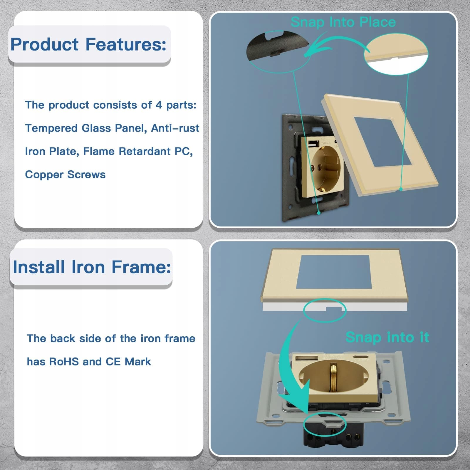 👍👍【WYMIARY ARTYKUŁU】: Rozmiar ramki różni się od innych gniazd, szczegóły w głównym obrazie. Zalecana głębokość puszki ściennej > 40mm (głębsza niż normalne gniazda)