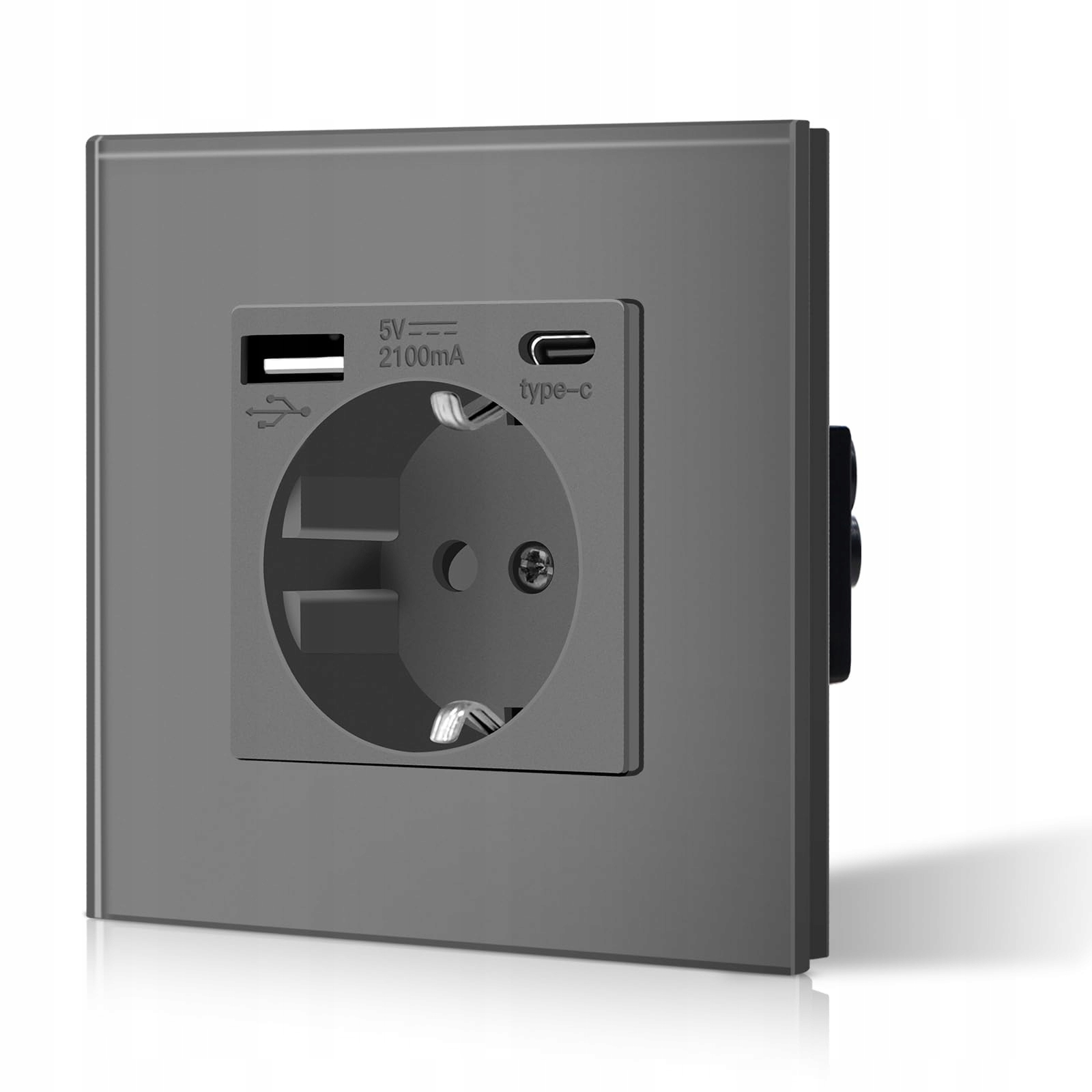BSEED Gniazdko Schuko USB Typ C Szklane 3w1 Ładowarka 2.1A Szare