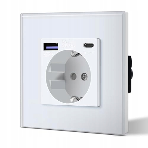 BSEED Gniazdko Schuko Z USB Typ C Szybkie Ładowanie 20W Szklane Białe | Premium Supply