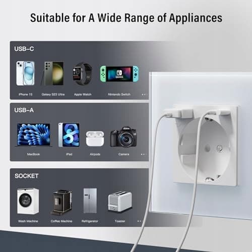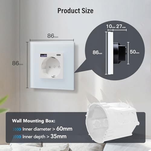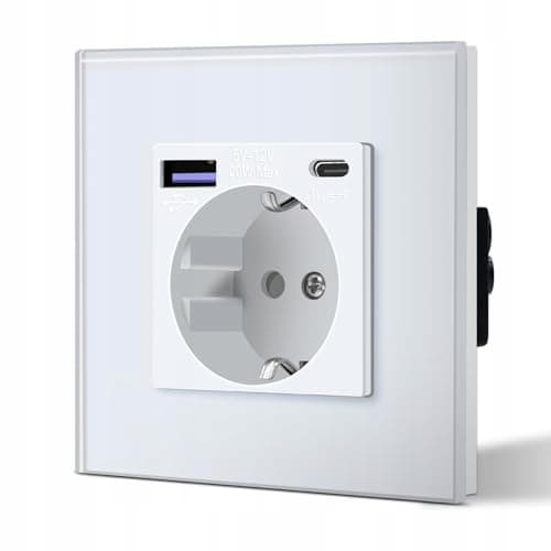 BSEED Schuko gniazdo ścienne z 20W USB & Typ C szybka ładowarka szkło 3 w 1 gniazdo podtynkowe moc ładowania i adapter USB C stacja ładowania, łatwy montaż biały