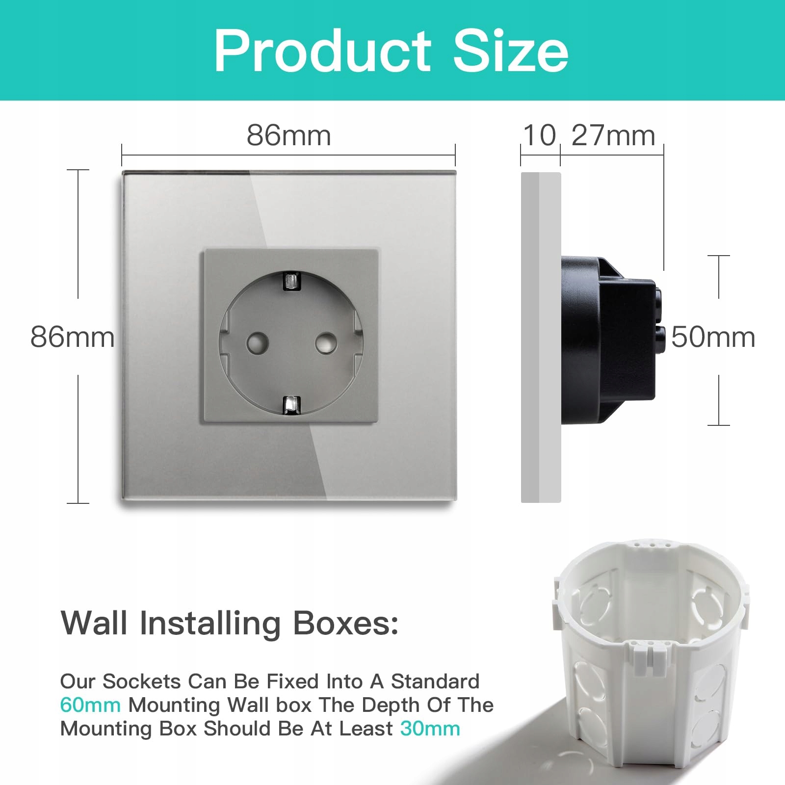 👍👍👍【STANDARD】: 16 A, 86mm*86mm. Nasze gniazda mogą być montowane w puszkach ściennych o średnicy 60mm. Głębokość puszki powinna wynosić co najmniej 25mm.