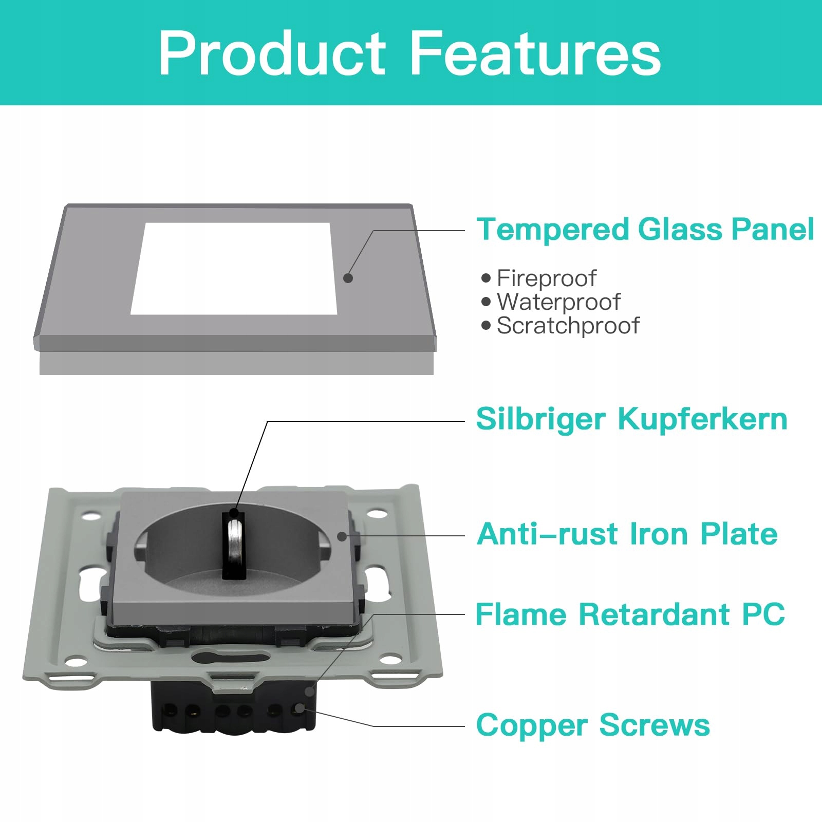 👍👍👍【DOBRA JAKOŚĆ】: Gniazdo BSEED wykonane jest z ognioodpornego ABS i wodoodpornego panelu dotykowego z hartowanego szkła kryształowego.