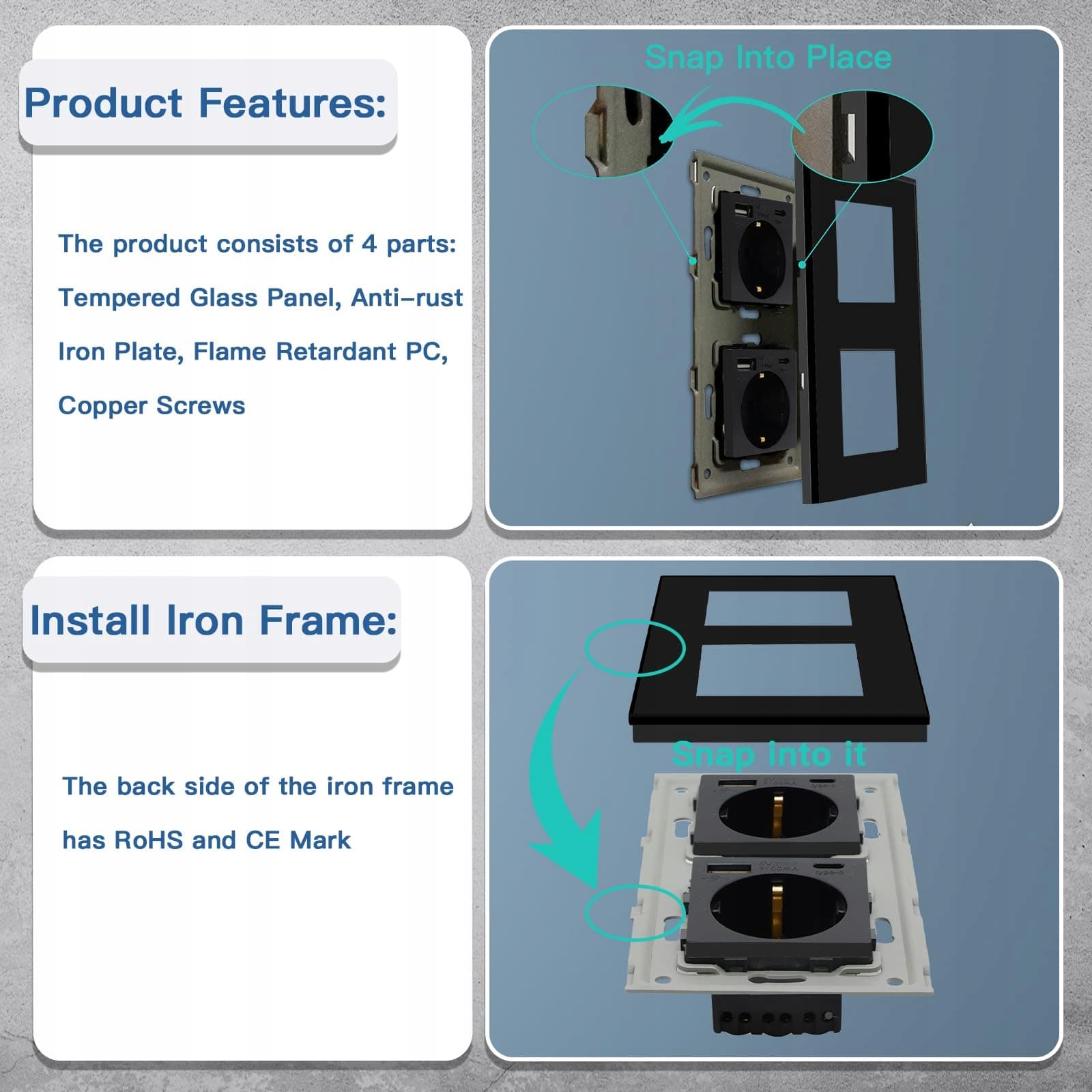 👍👍【Wymiary artykułu】: Rozmiar ramki różni się od innych gniazd, szczegóły w głównym obrazie. Zalecana głębokość puszki ściennej > 40mm (głębsza niż normalne gniazdka)