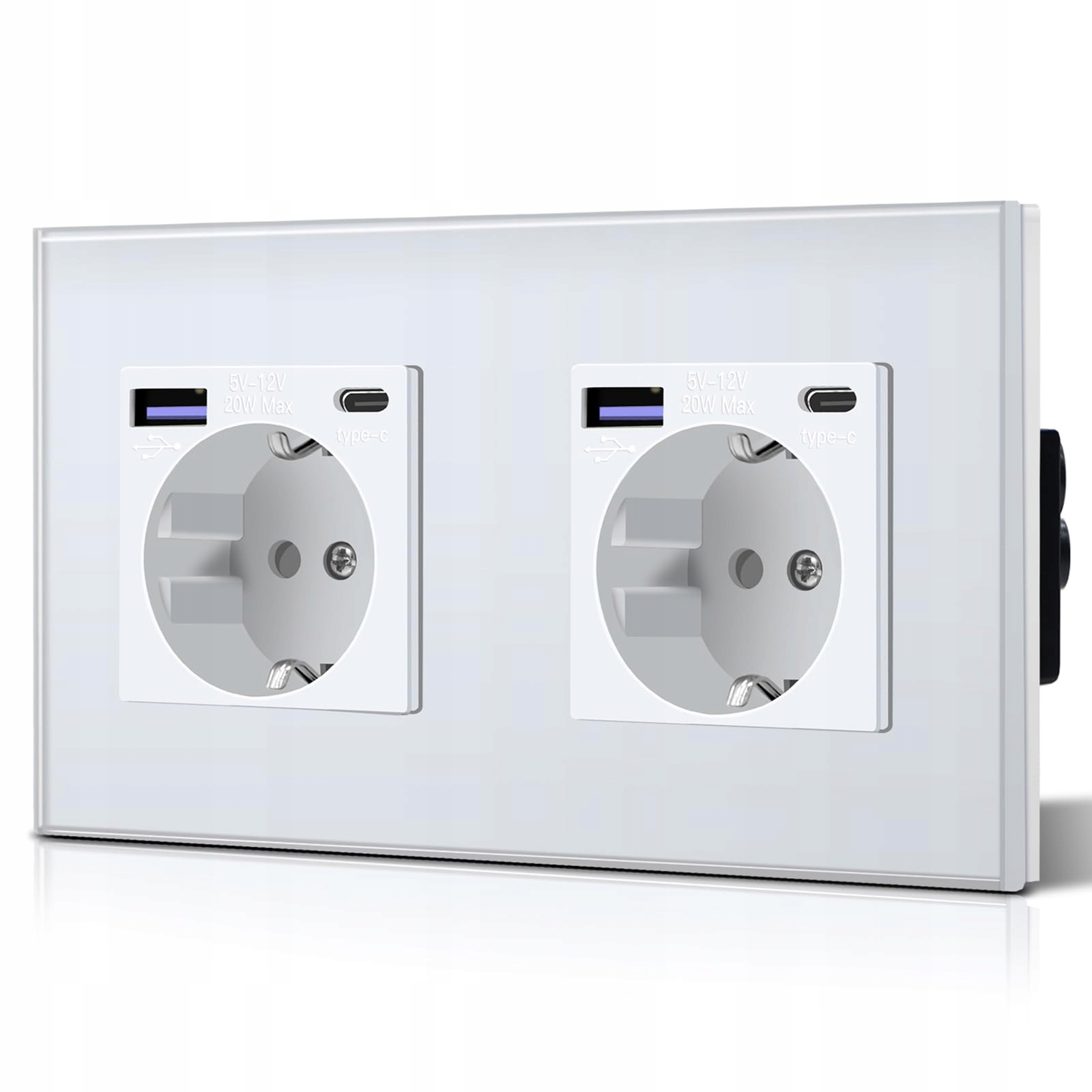 BSEED Schuko gniazdo podwójne z 20W USB i szybka ładowarka typu C szkło 3 w 1 gniazdo podtynkowe moc ładowania i stacja ładowania adaptera USB C, łatwy montaż biały