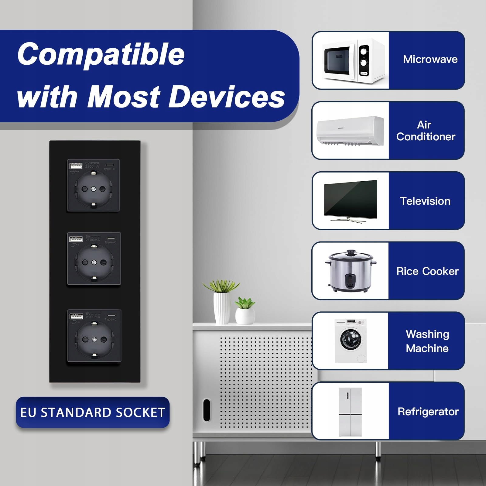 👍👍【BOGATA FUNKCJA】: Gniazdo podtynkowe jest odpowiednie dla tradycyjnych urządzeń domowych i może ładować dwa urządzenia jednocześnie przez złącze USB.