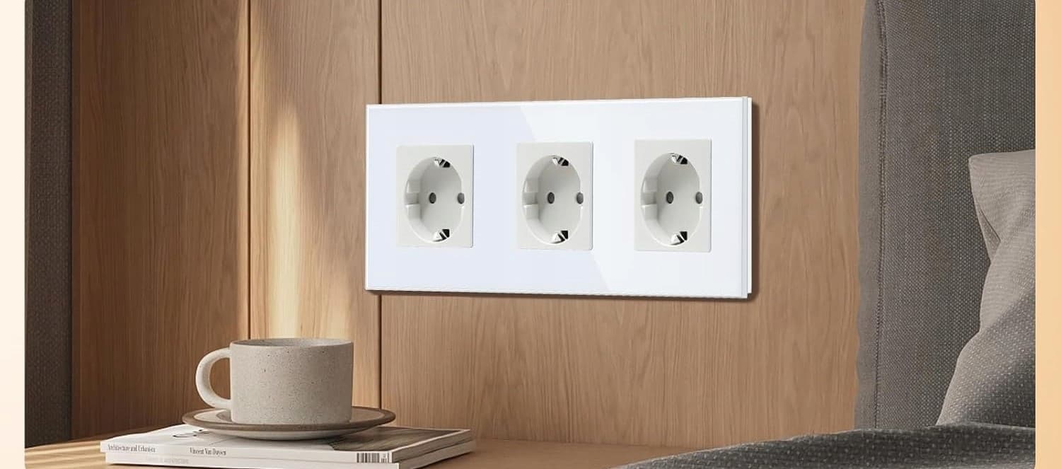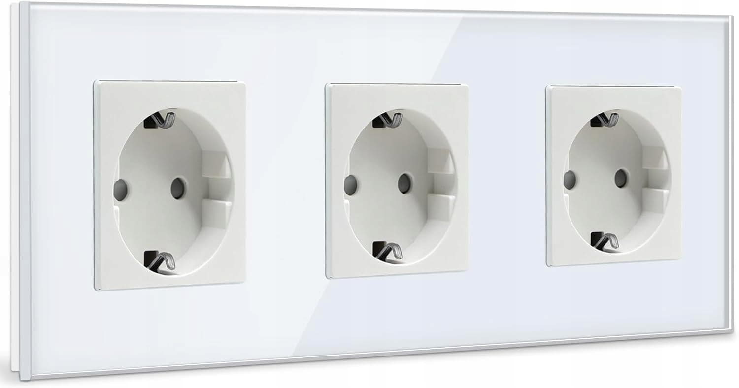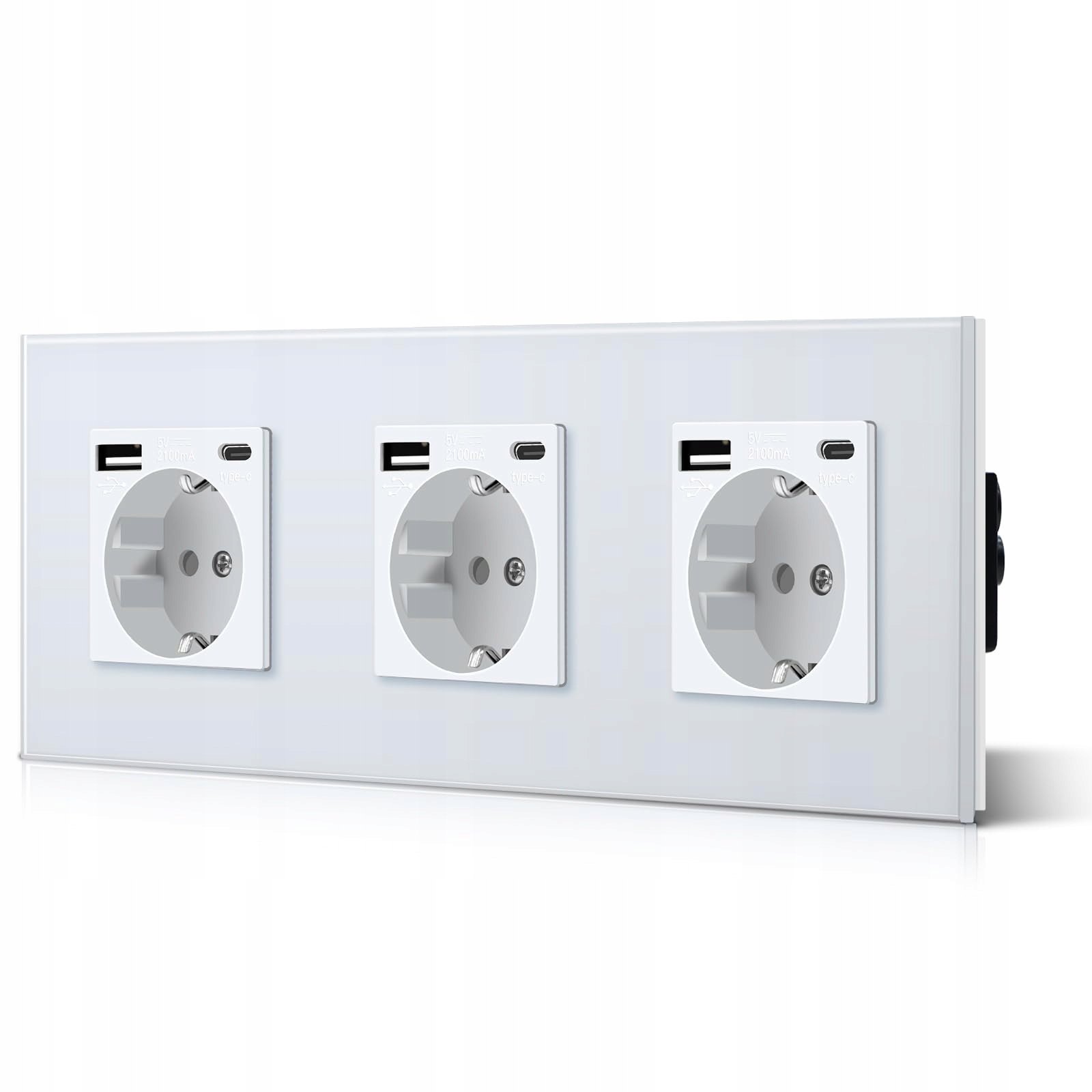 BSEED Potrójne Gniazdo Schuko USB Typ C Szklane 3w1 2.1A Białe | Premium Supply