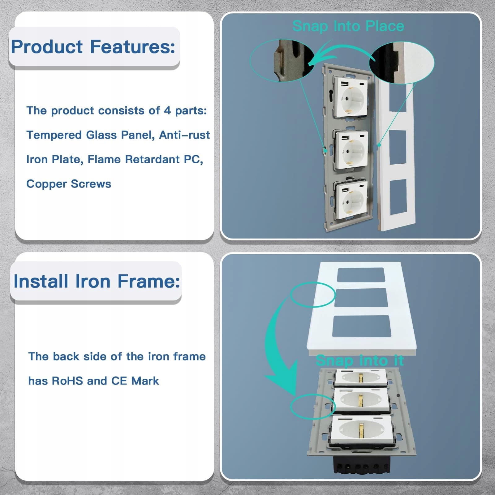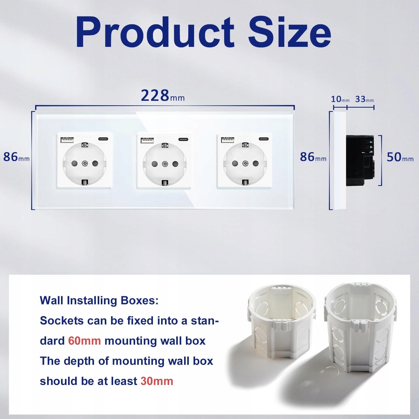 👍👍【Wymiary artykułu】: Rozmiar ramki różni się od innych gniazd, szczegóły w głównym obrazie. Zalecana głębokość puszki ściennej > 40mm (głębsza niż normalne gniazda)