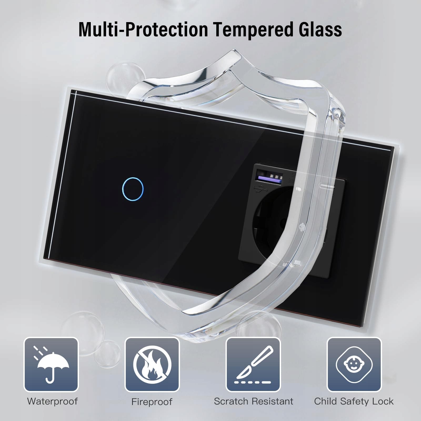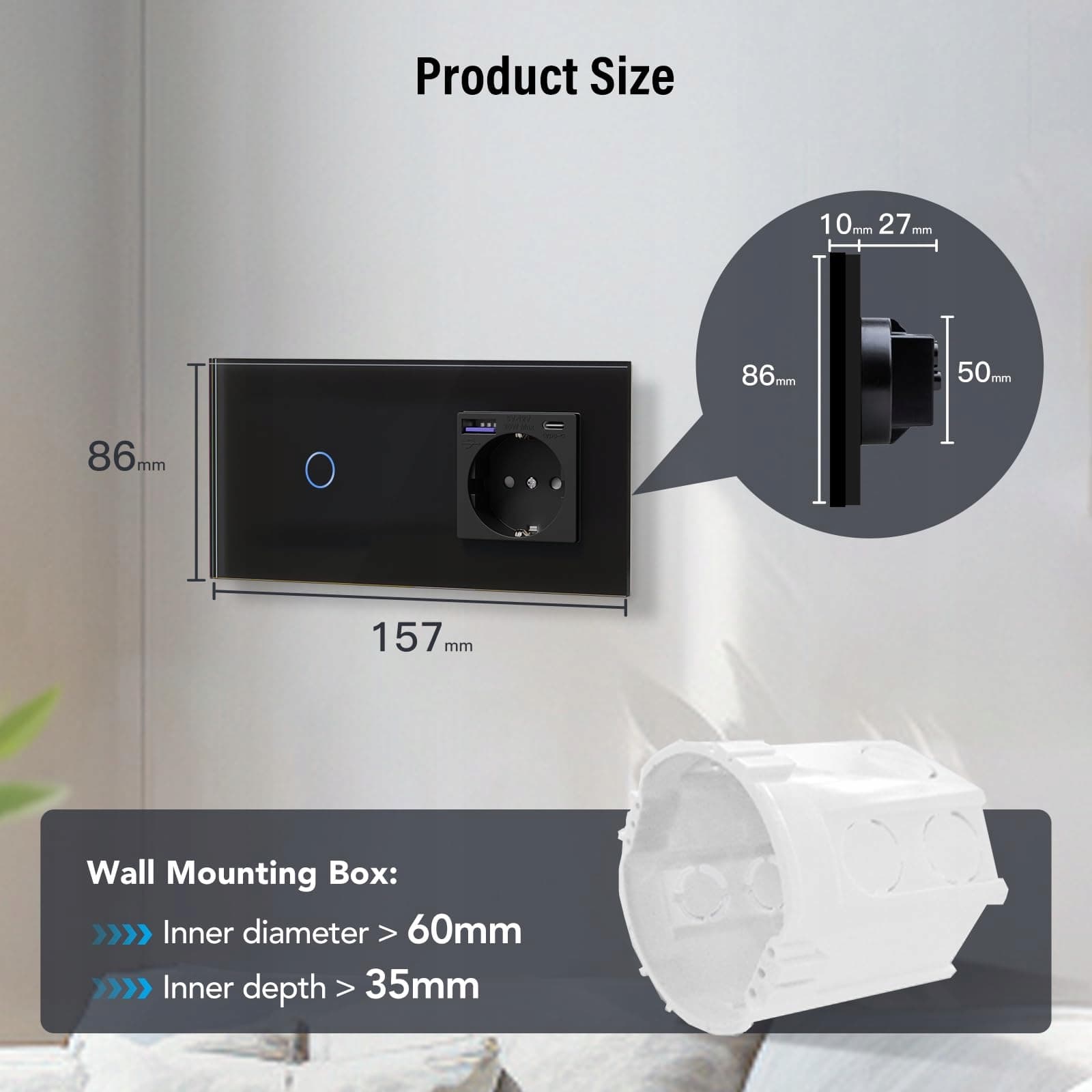BSEED Włącznik światła dotykowy 1-gangowy 1-kierunkowy z USB C 20W Czarny