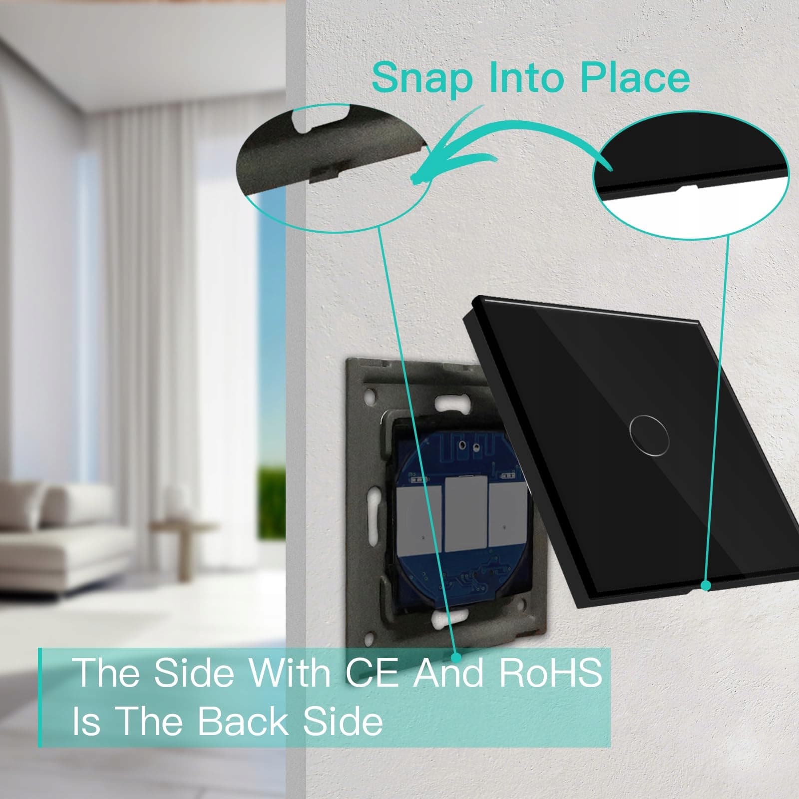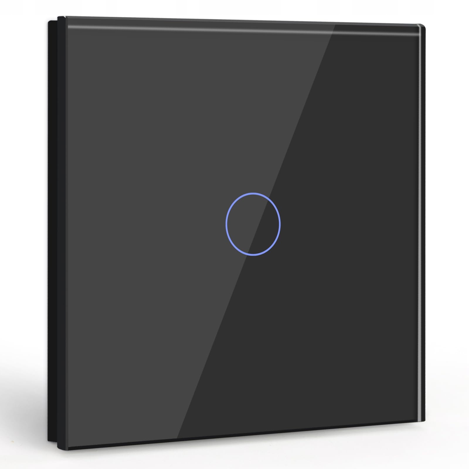 BSEED Włącznik Światła Dotykowy 1-Kanałowy Czarny z Ramką Szklaną | Premium Supply