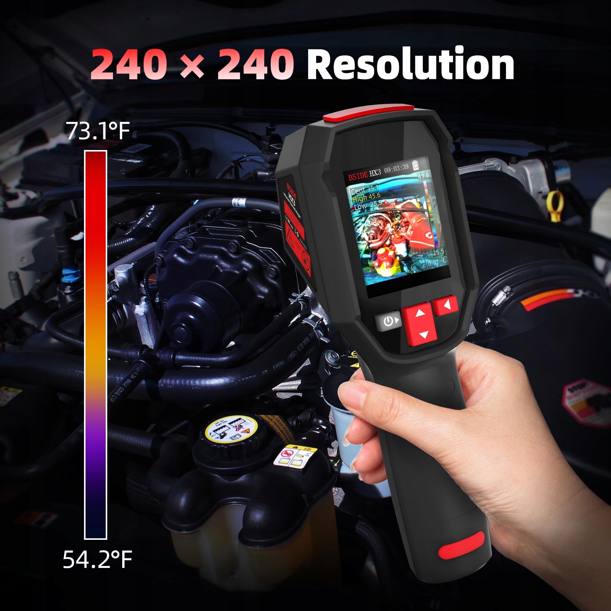 [240 x 240 rozdzielczość]: BSIDE HX3 kamera termowizyjna na podczerwień z rozdzielczością termiczną 240 x 240, pomaga lepiej wykrywać problemy termiczne: brak izolacji, wycieki powietrza/wody, ogrzewanie, problemy HVAC, samochody, usterki elektryczne i mechaniczne itd.