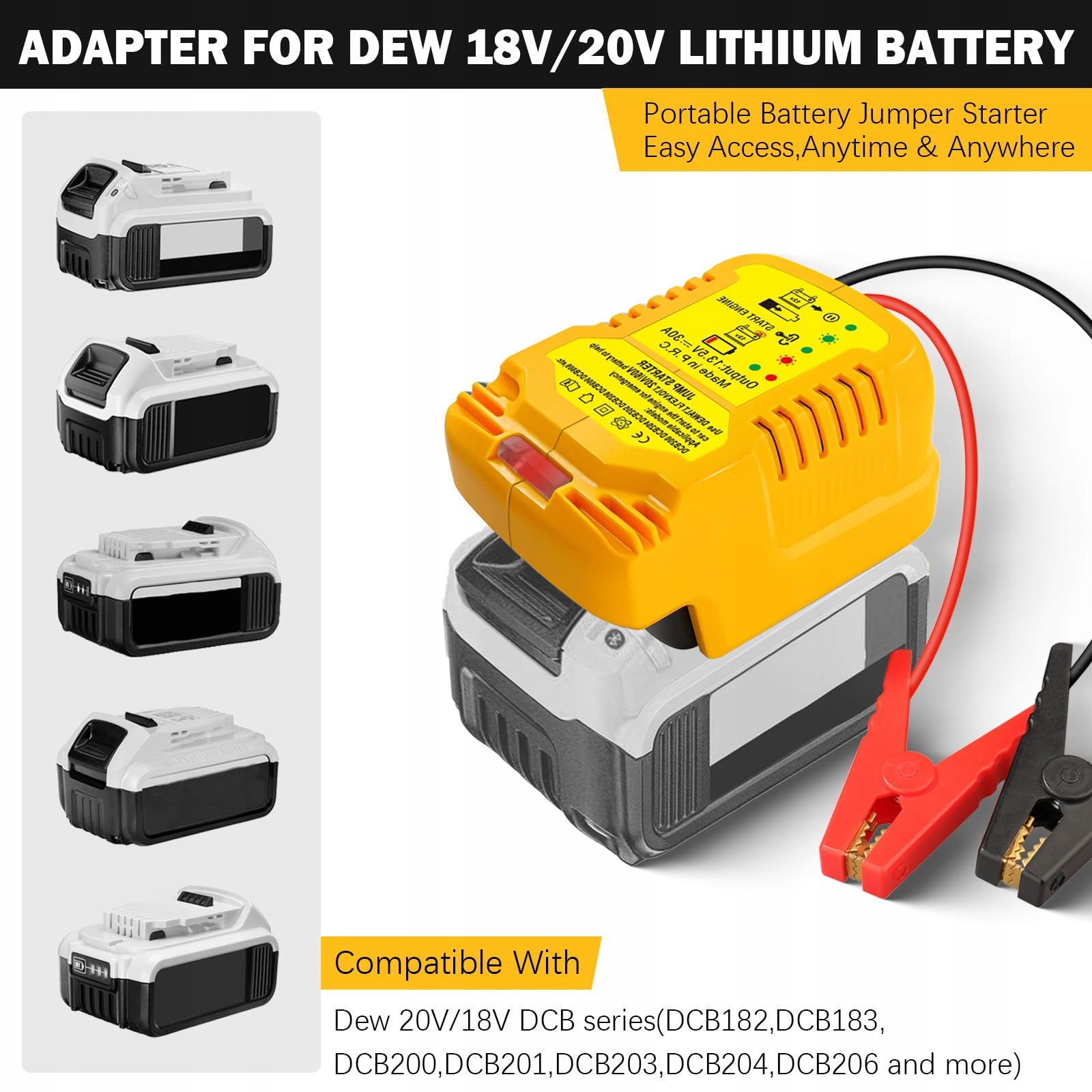 🚀【Kompatybilny z akumulatorem DeWalt 18V】Może być używany jako booster rozruchowy do samochodu z akumulatorem narzędziowym, silnik 12V-24V. Odpowiedni do akumulatorów DeWalt 18V DCB203 DCB204 DCB206 DCB606 DCB609 DCB606 DCB612 DCB207 itd. (Akumulator nie jest dołączony)