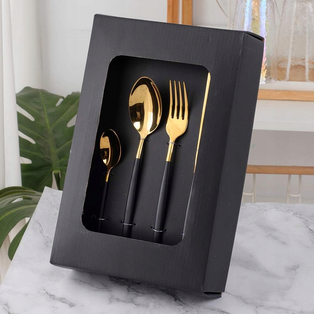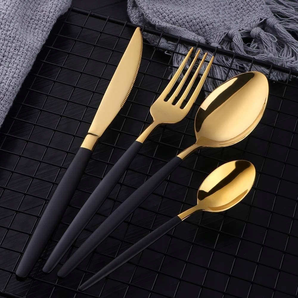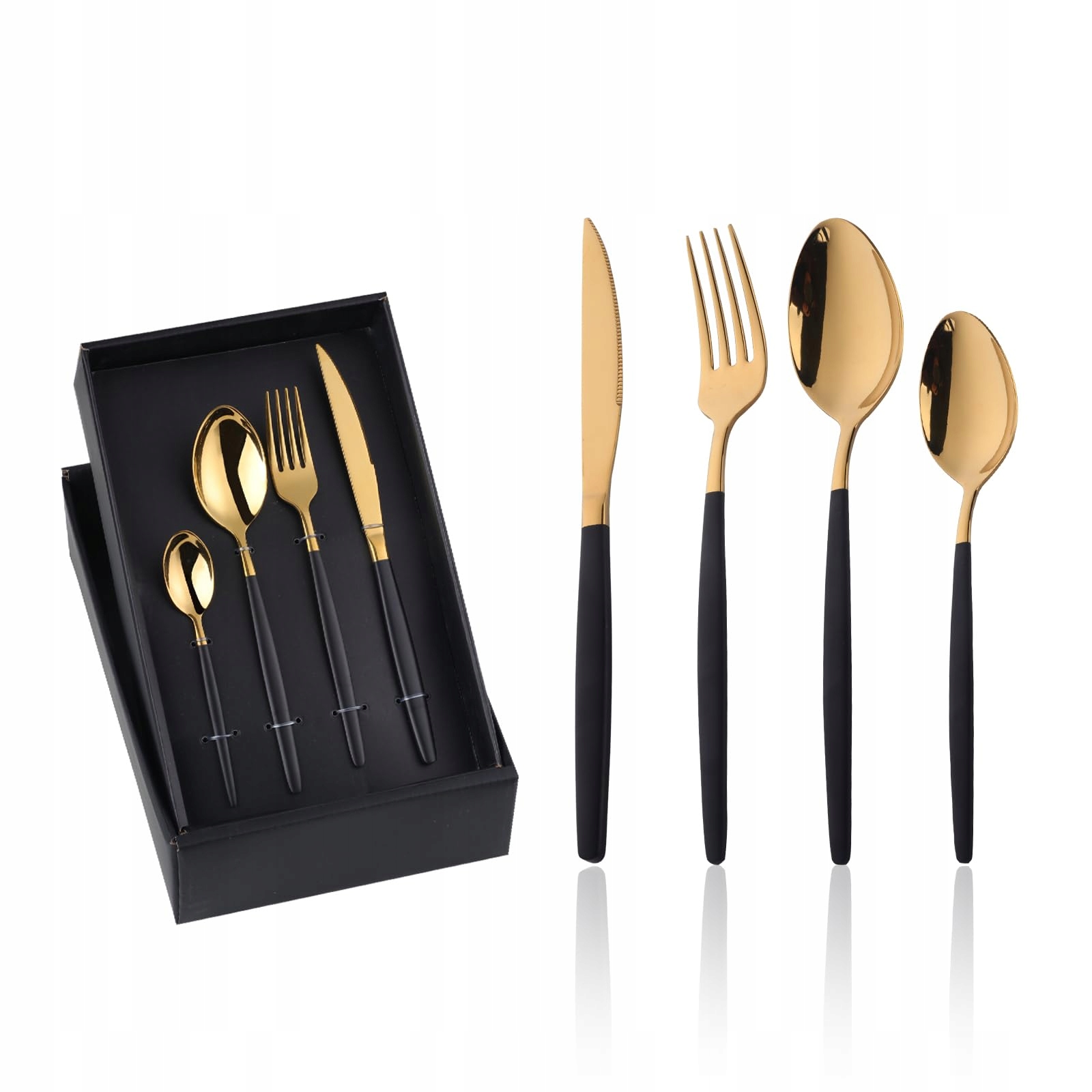 Buyer Star Zestaw Sztućców Złoto Czarny 16 Sztuk Do Domu Kuchni Restauracji | Premium Supply