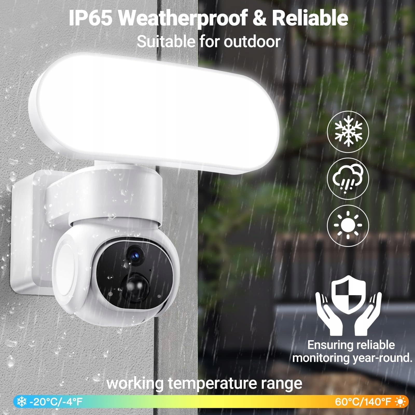 【Inteligentna funkcja powiązania】Kamera zewnętrzna może zdalnie włączać i wyłączać światło oraz wyświetlać obraz na żywo za pomocą aplikacji UBOX. W nocy kamera aktywuje się automatycznie i włącza reflektory, gdy wykryje osoby lub ruch. Przy wykryciu ruchu kamera outdoor automatycznie rejestruje zdjęcia i wysyła powiadomienia na Twój telefon.