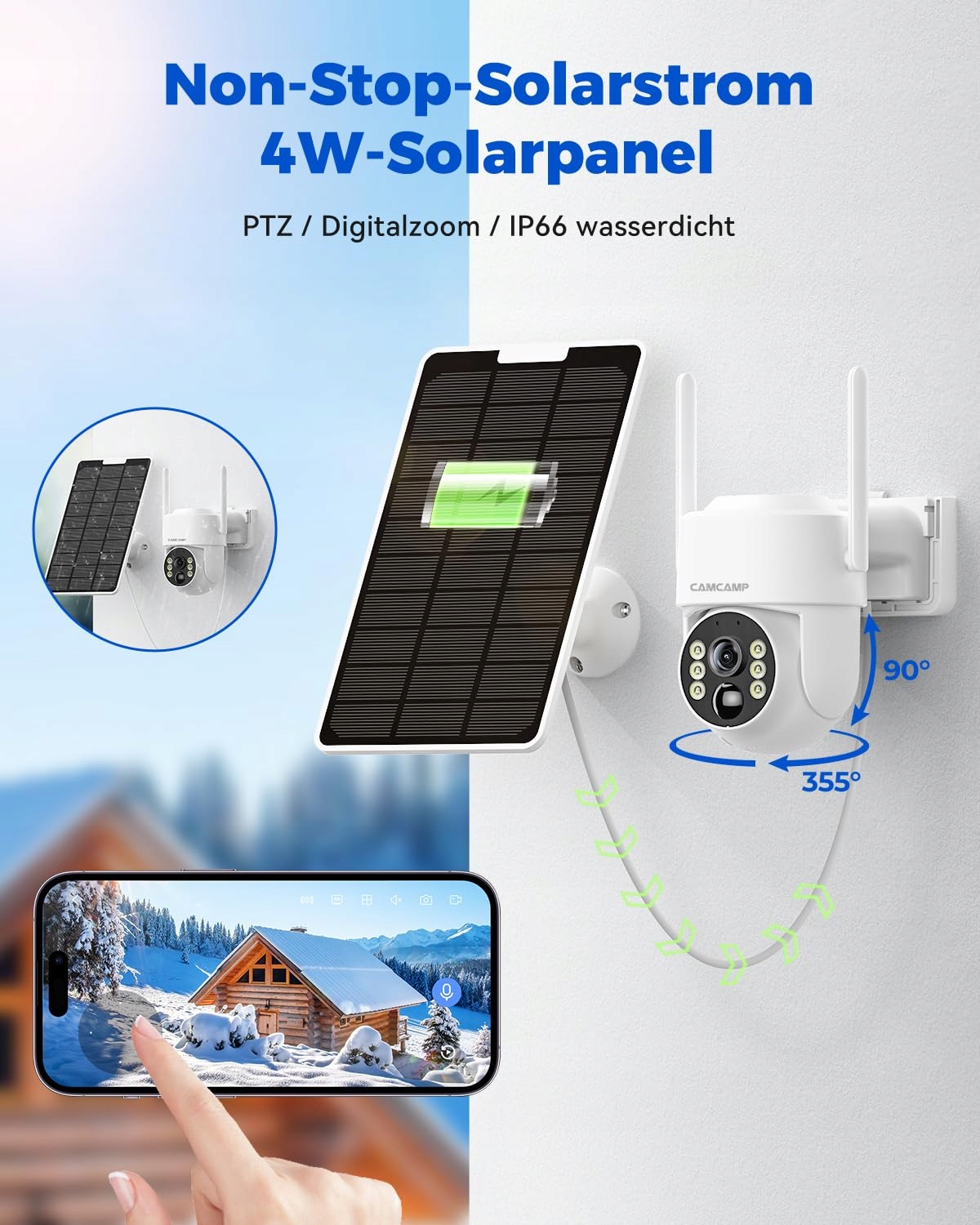 CAMCAMP Solar Monitor 4MP 4x WLAN Kamera 64GB 7" Ekran