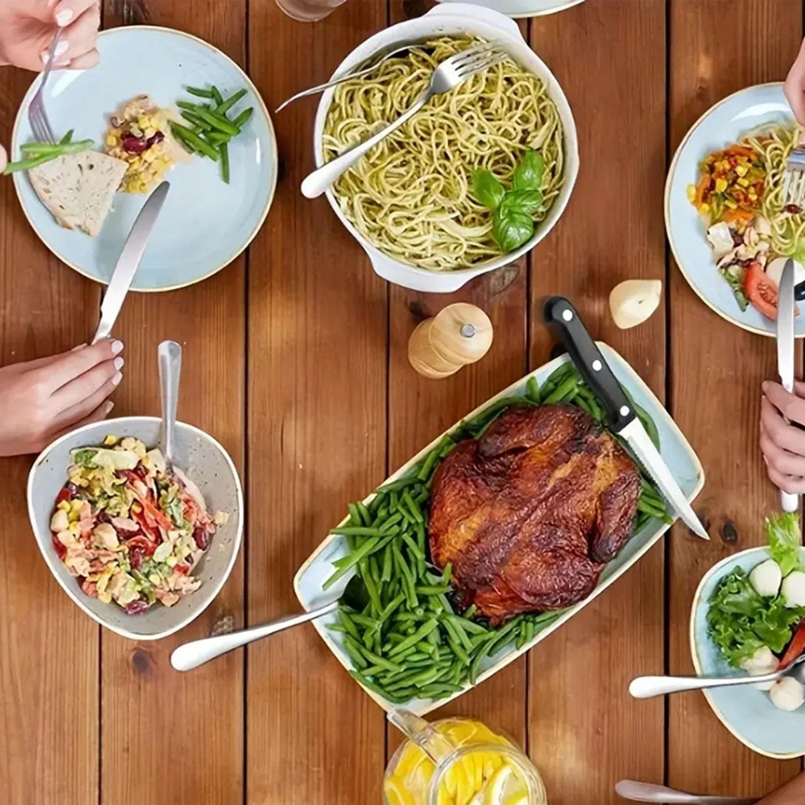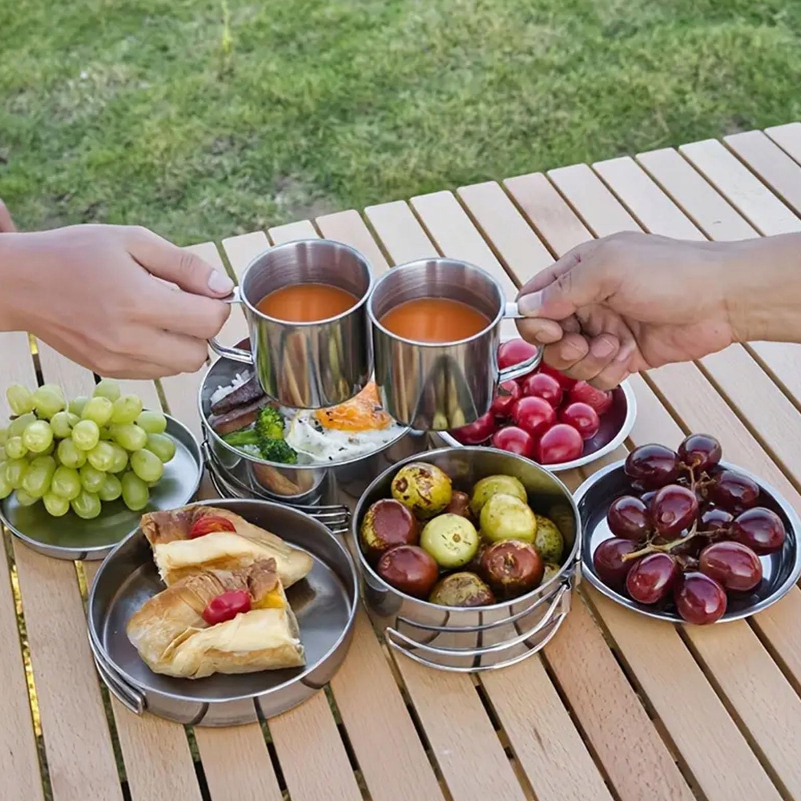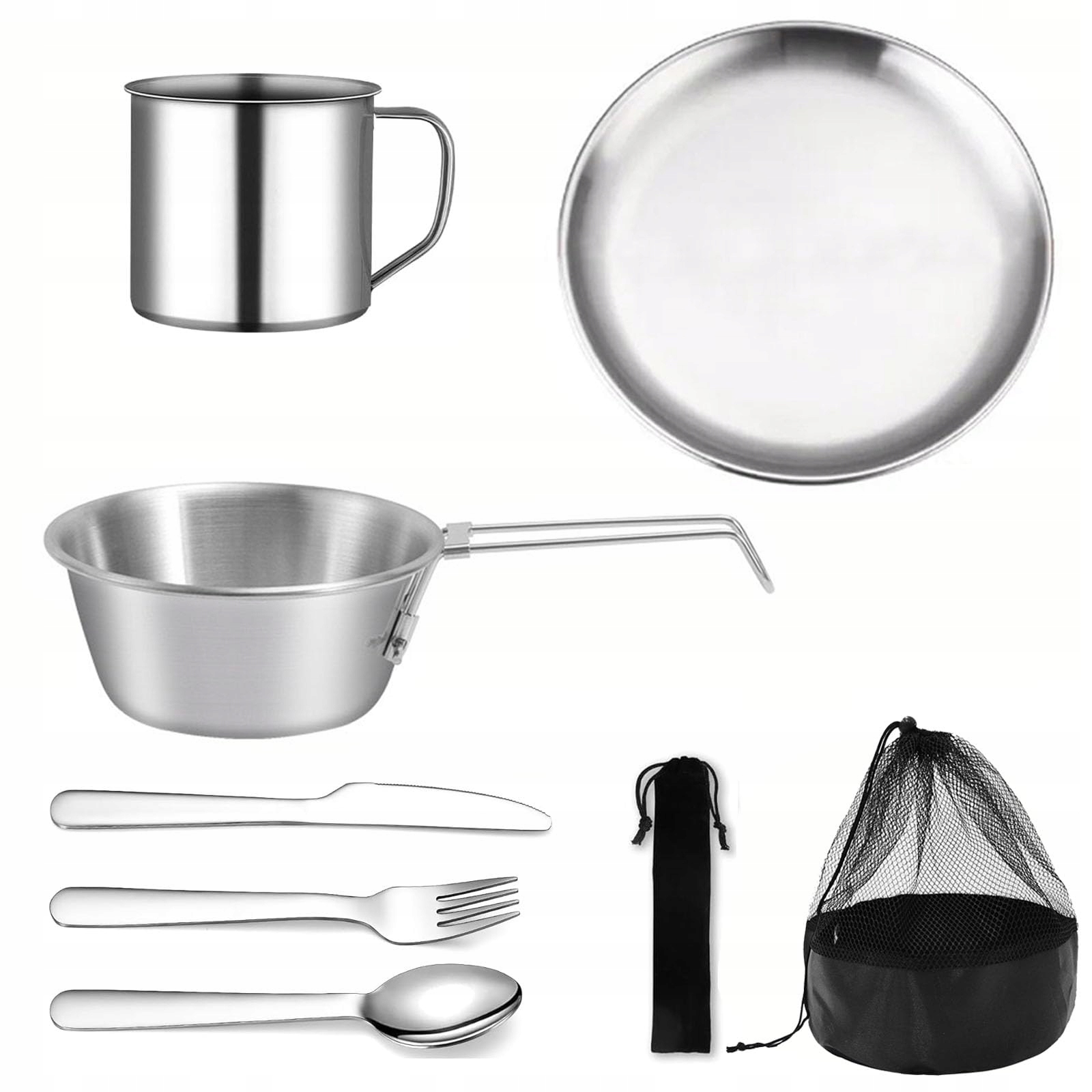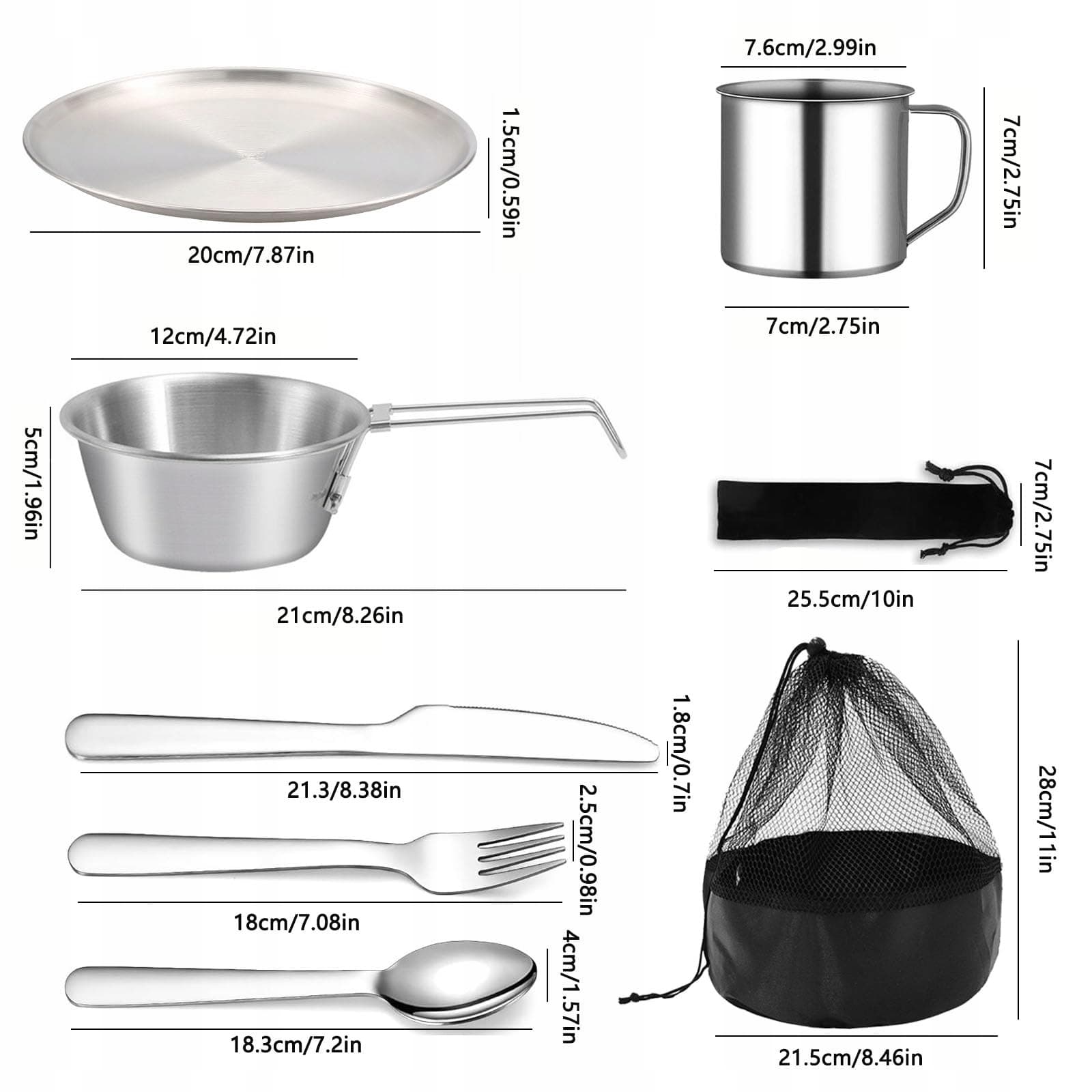 Wysokiej jakości materiał: Naczynia i sztućce wykonane są ze stali nierdzewnej, trwałe, bezwonne i bezpieczne dla żywności. Bezpieczne w kontakcie z jedzeniem i zapewniają przyjemne doznania podczas posiłków na łonie natury.