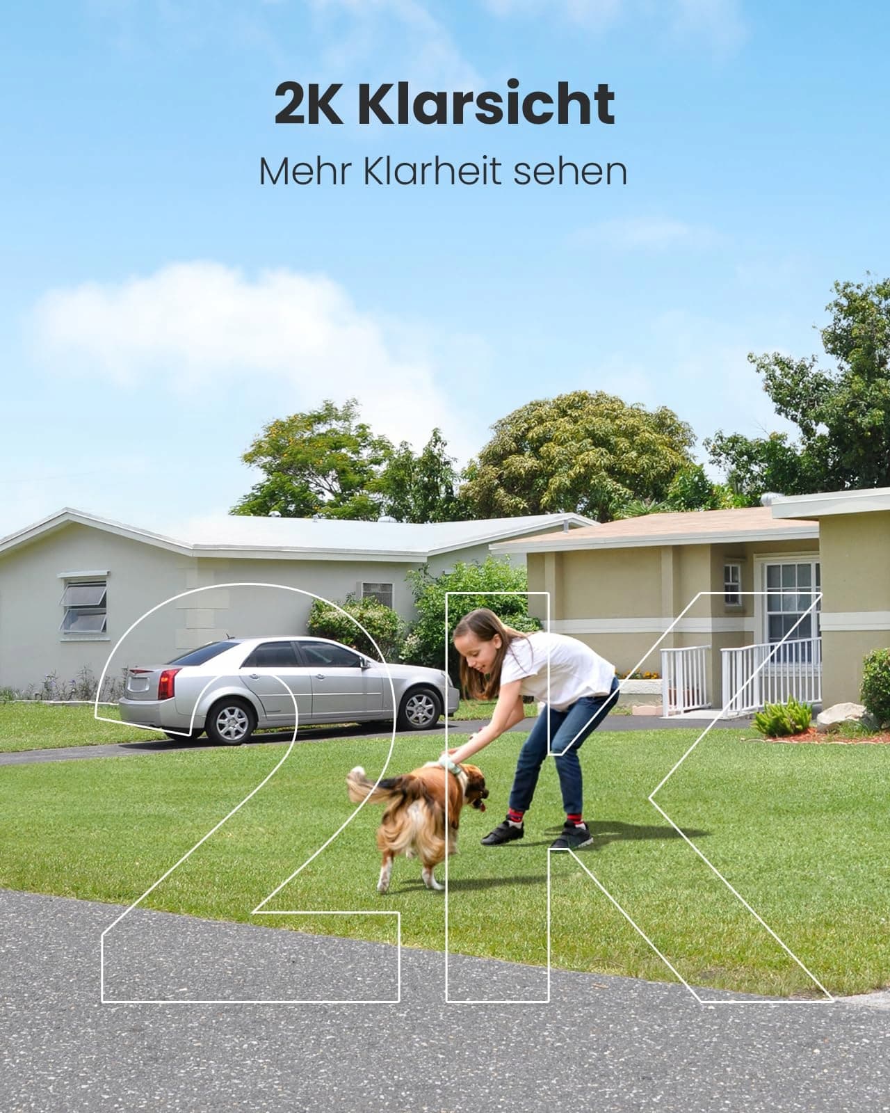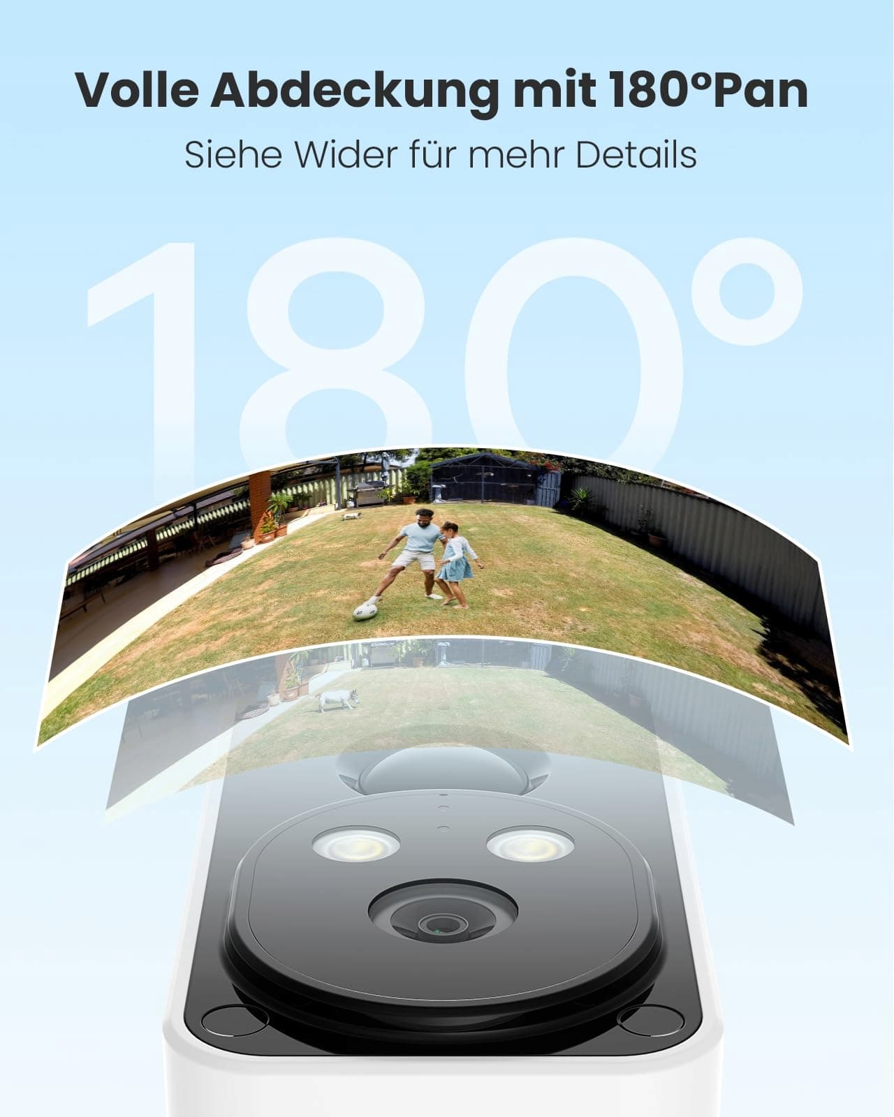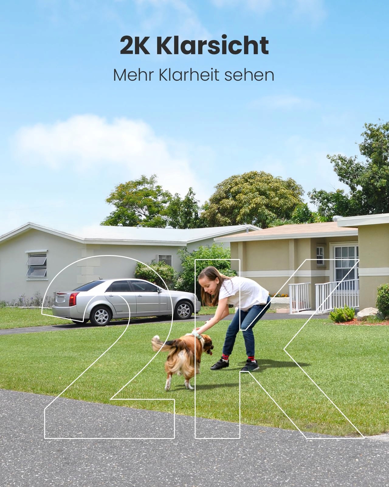 Jakość 2K z inteligentnymi alarmami: Możesz oglądać wyraźne obrazy i filmy w 2K Full HD, 180° obrót dla szerszego zasięgu. Wbudowane 2 światła o podwójnym źródle zapewniają kolorowy tryb nocny oraz inteligentny podczerwony tryb nocny do 10 metrów. W międzyczasie alarm i reflektor mogą zostać aktywowane, gdy kamera wykryje obcego, odstraszając go za pomocą wbudowanego mikrofonu i głośnika dla pełnego spokoju ducha.
