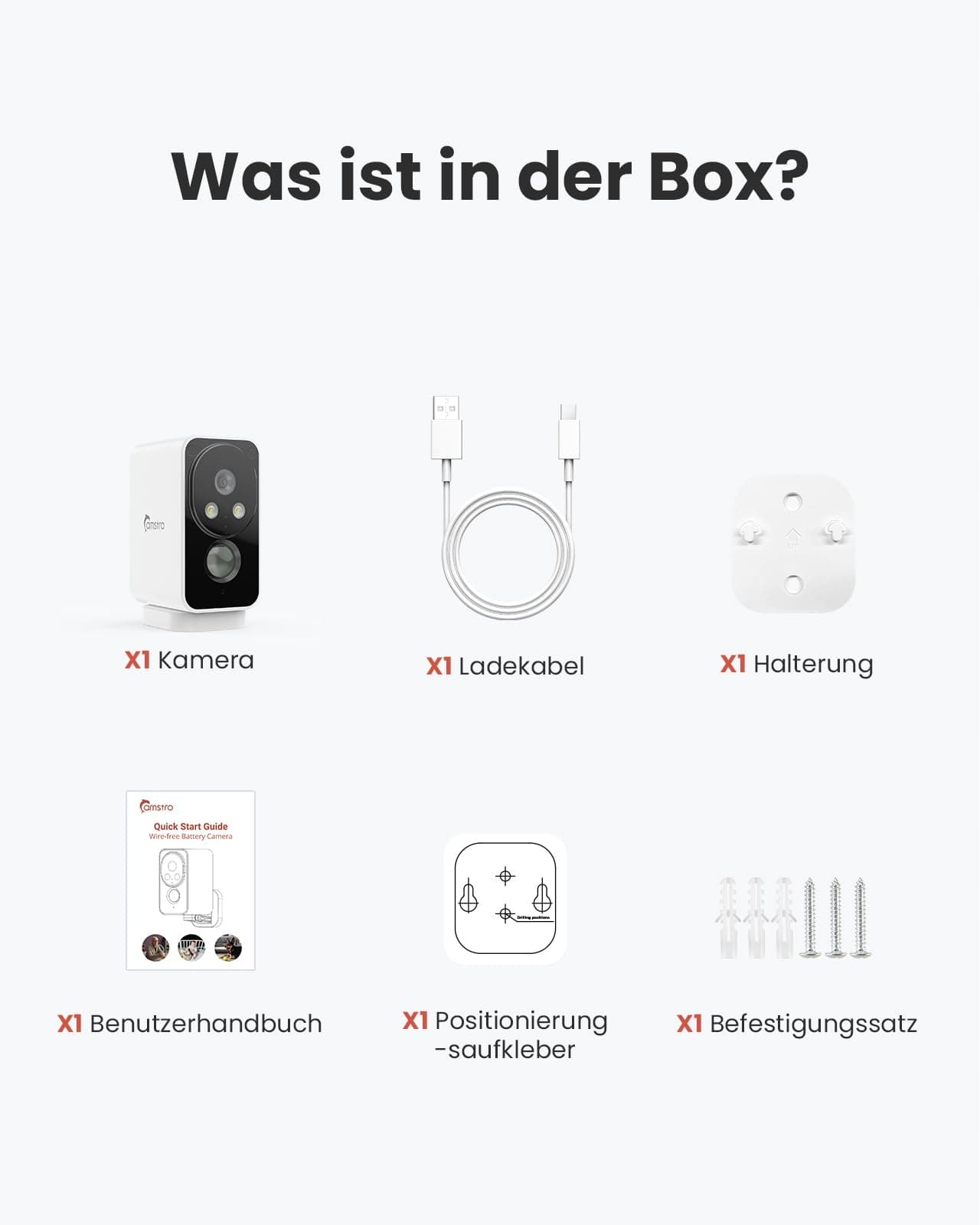 CAMSTRO Kamera Zewnętrzna 2K Bezprzewodowa Kolorowa Noc PIR Audio Alexa