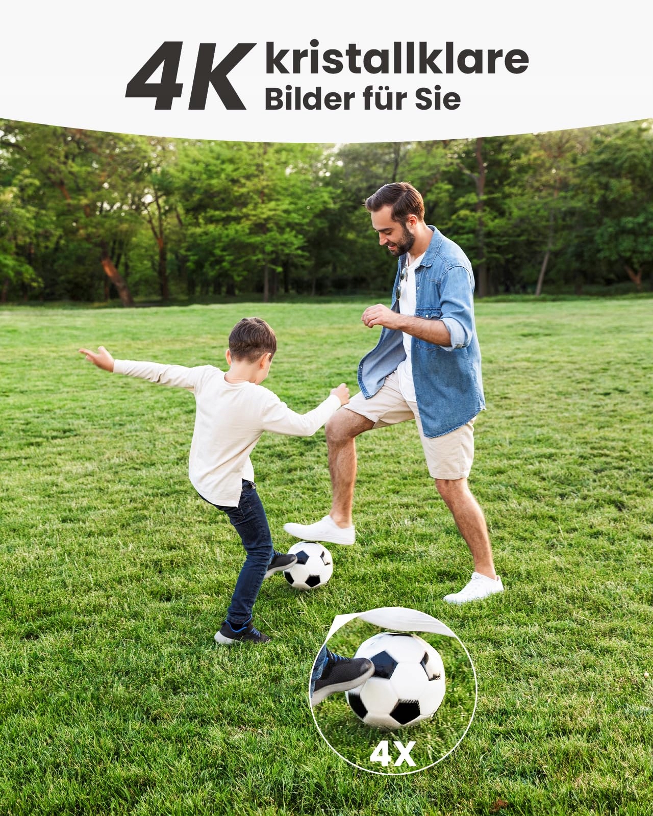 4K Ultra-HD w naturalnych kolorach – szczegóły takie jak tablice rejestracyjne i etykiety paczek wyraźnie widoczne: Dzięki prawdziwej rozdzielczości 4K Ultra-HD (3840×2160) i sensorowi 8MP CAMSTRO dostarcza ostre obrazy na żywo – nawet przy słabym oświetleniu w pełnym kolorowym widzeniu nocnym. Dzięki 4× zoomowi cyfrowemu nawet tablice rejestracyjne, naklejki na paczkach czy drobne detale tekstowe pozostają czytelne, bez utraty jakości. Monitoring, na którym możesz polegać 24/7.