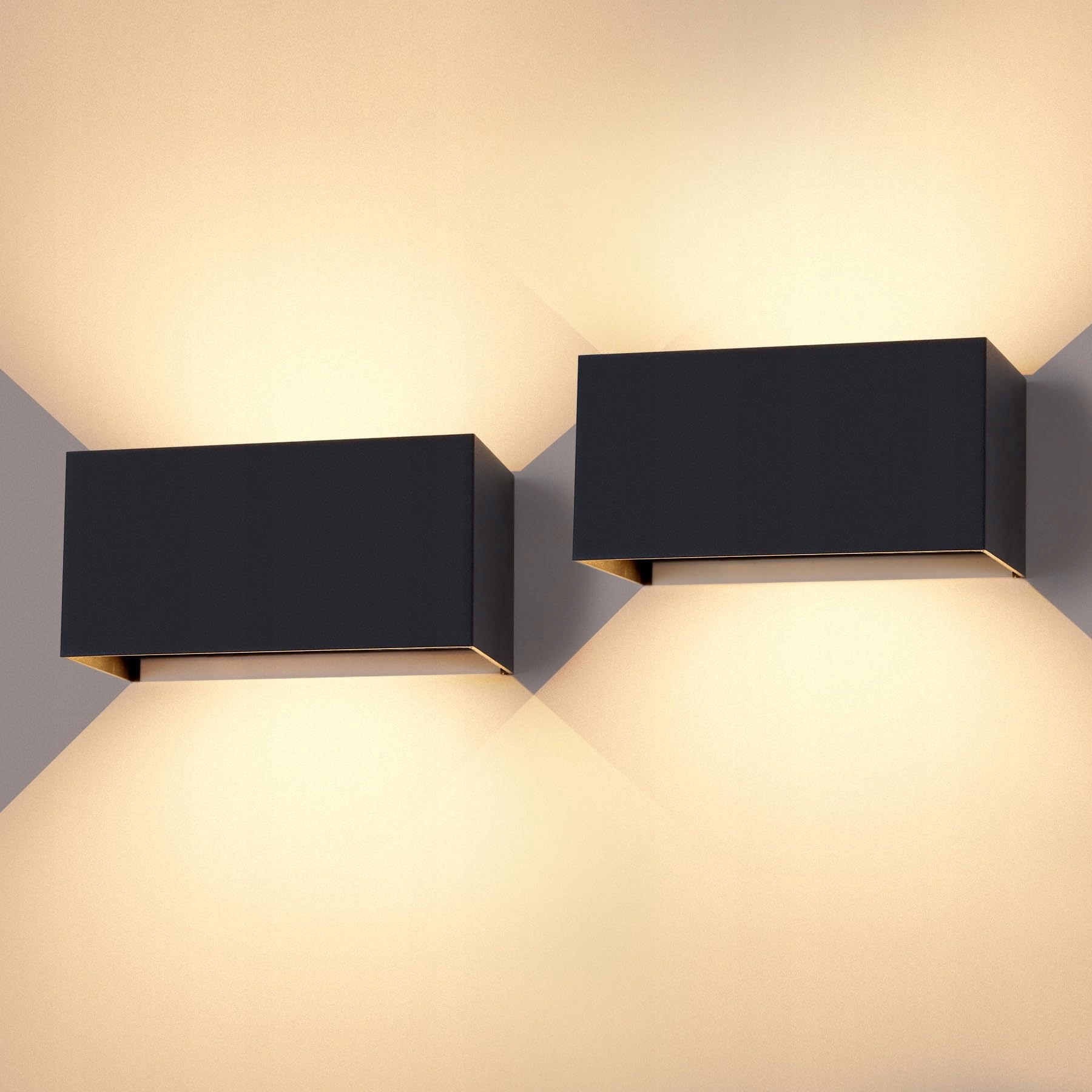 CANMEIJIA LED Kinkiet LED Lampa ścienna 12W 3000K Lampa zewnętrzna 2 sztuki IP65 Regulowany strumień światła w górę i w dół do sypialni, salonu, ogrodu, korytarza, balkonu, łazienki, czarny