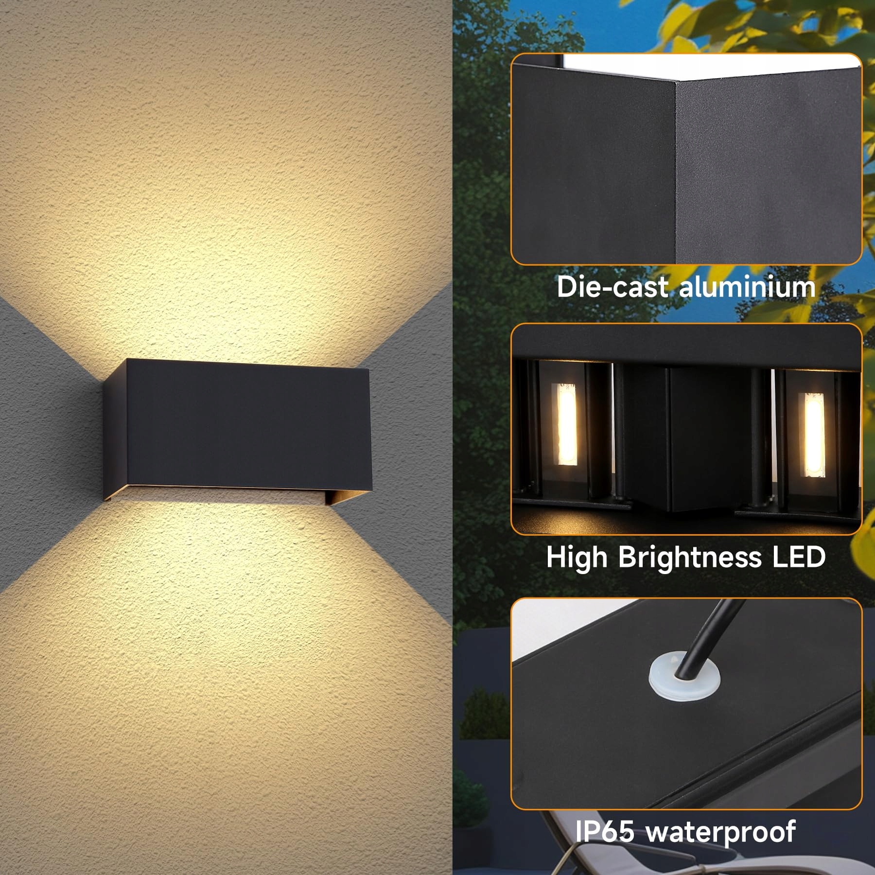 【IP65 wodoodporny i pyłoszczelny】 Nasze kinkiety z regulacją góra-dół są wodoodporne zgodnie z normą IP65, wyposażone w kilka gumowych uszczelek wewnątrz, które skutecznie chronią przed wodą i wilgocią, nadają się do oświetlenia wewnętrznego i zewnętrznego, takiego jak balkon, weranda, ogród, łazienka itp. Działają również podczas złej pogody, takiej jak grad czy intensywny deszcz.
