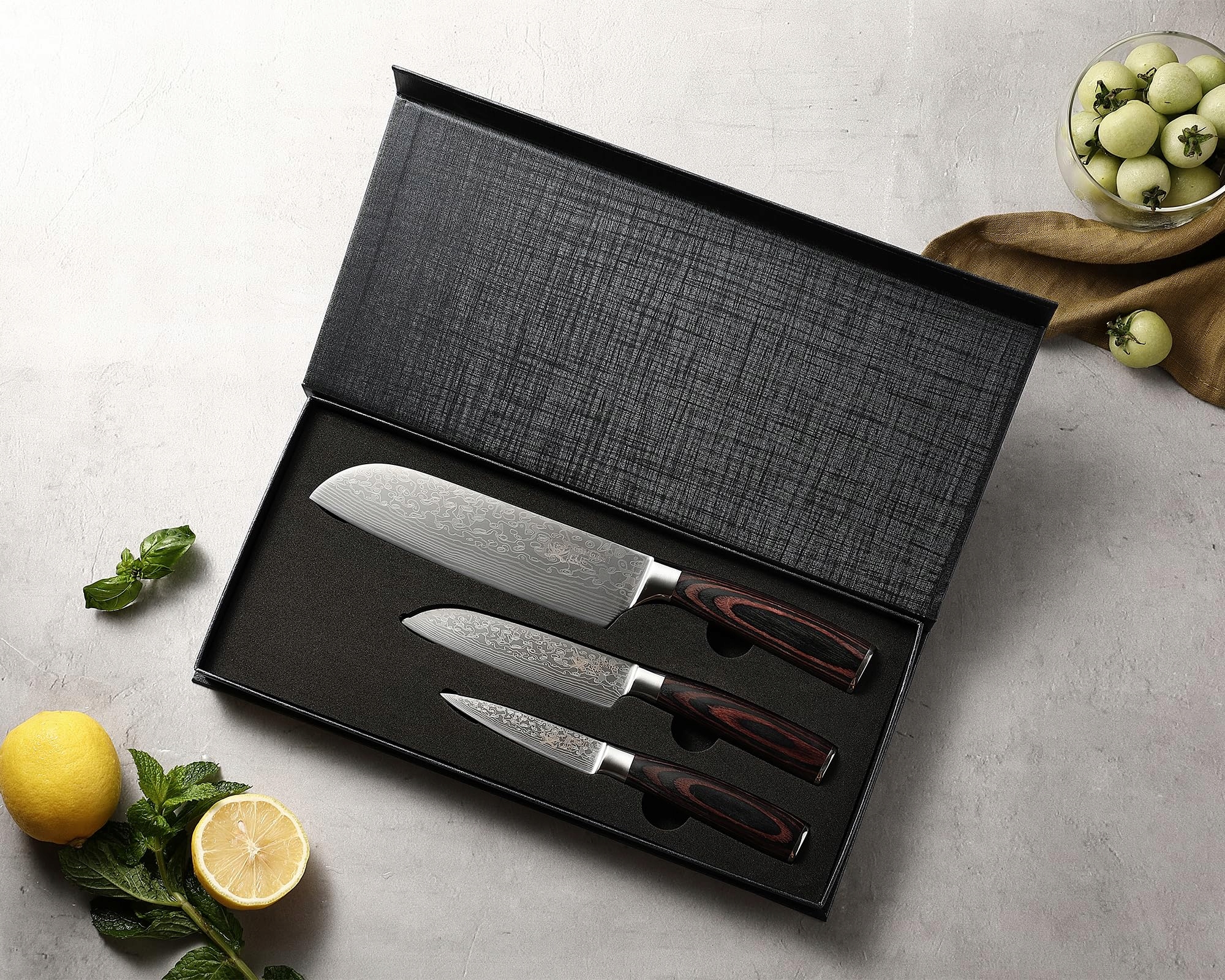 CAPTAIN CUT Zestaw Noży 3 Sztuki Stal Nierdzewna Damast Pakkaholz | Premium Supply