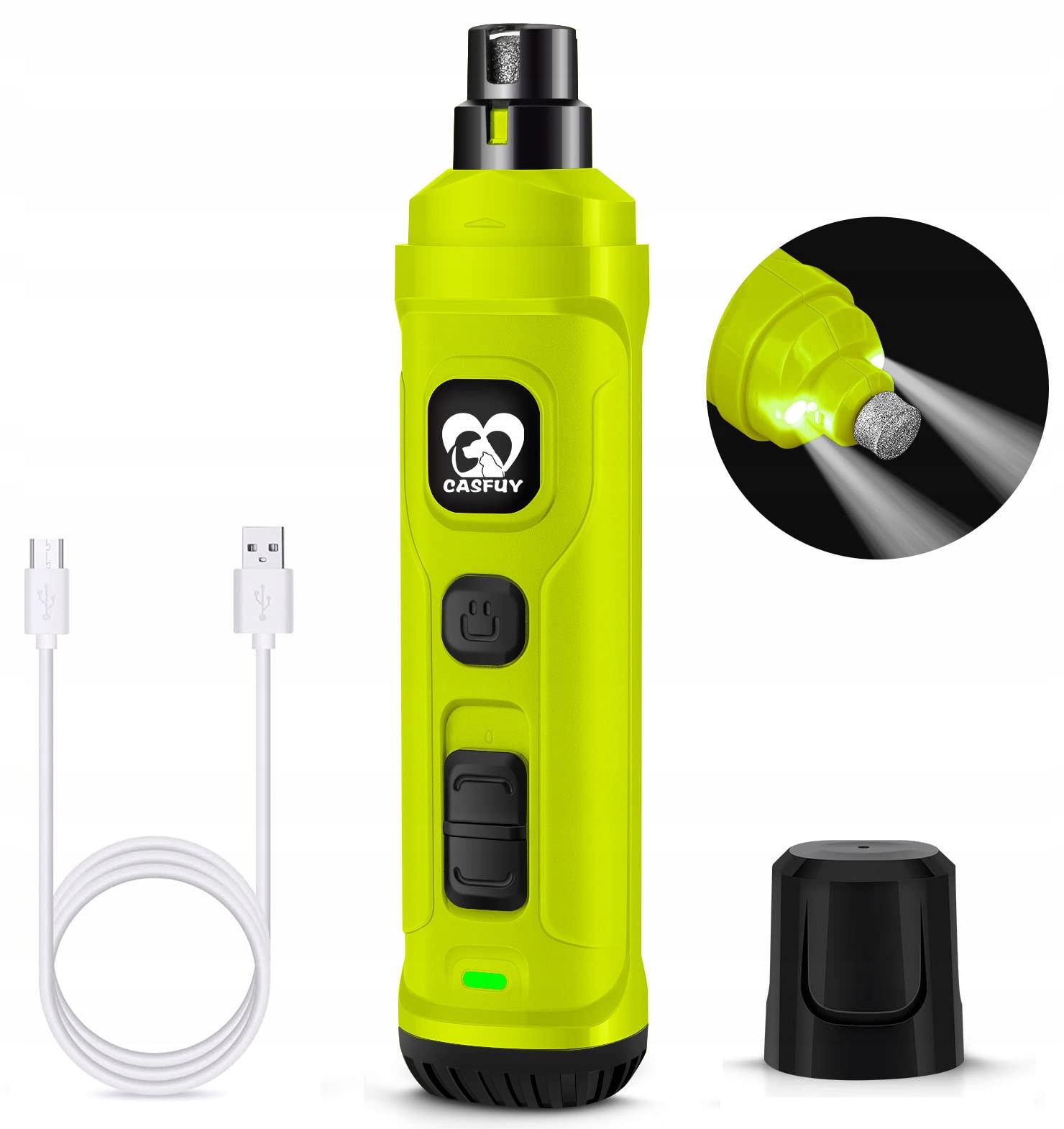 CASFUY Pilnik Do Pazurów Dla Psów I Kotów 2 Prędkości LED Zielony | Premium Supply